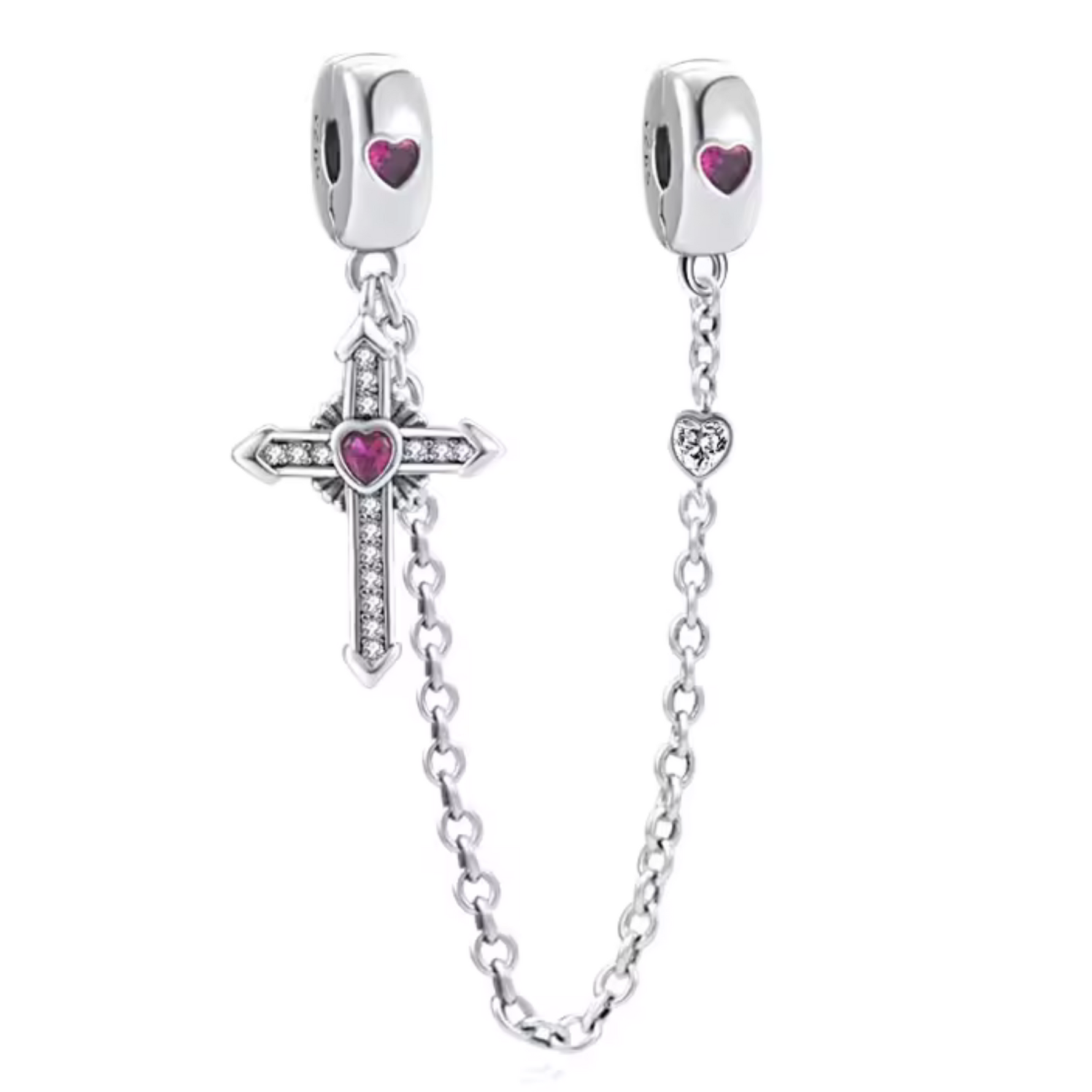 Display a powerful symbol of faith and love with this 925 silver chain charm, featuring a cross adorned with delicate pink/red hearts. A symbol of hope, devotion, and unconditional love, this piece of jewelry combines spirituality and gentleness, paying homage to the strength of beliefs and emotional bonds.