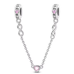 Add a touch of eternal love and elegance to your bracelet with this beautiful safety chain adorned with the infinity sign and a delicate pink heart. Crafted in 925 silver, this chain combines the timeless elegance of the infinity symbol with the softness of the pink heart, creating a perfect harmony between love and infinite beauty.