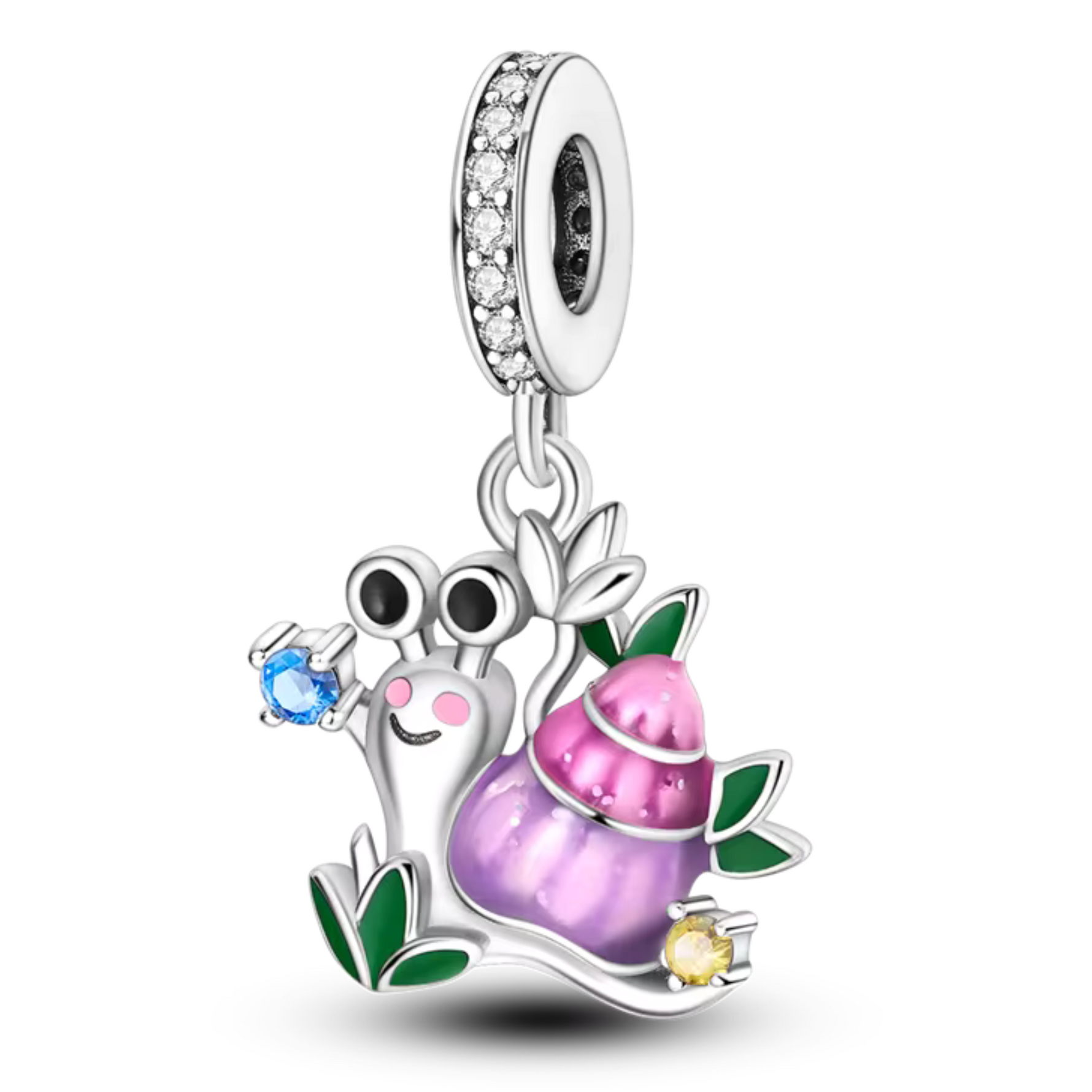 Discover this delicate charm depicting a peaceful snail gliding among blades of grass. Finely sculpted in sterling silver and enhanced with meticulous detailing, this piece embodies slowness, gentleness, and harmony with nature.