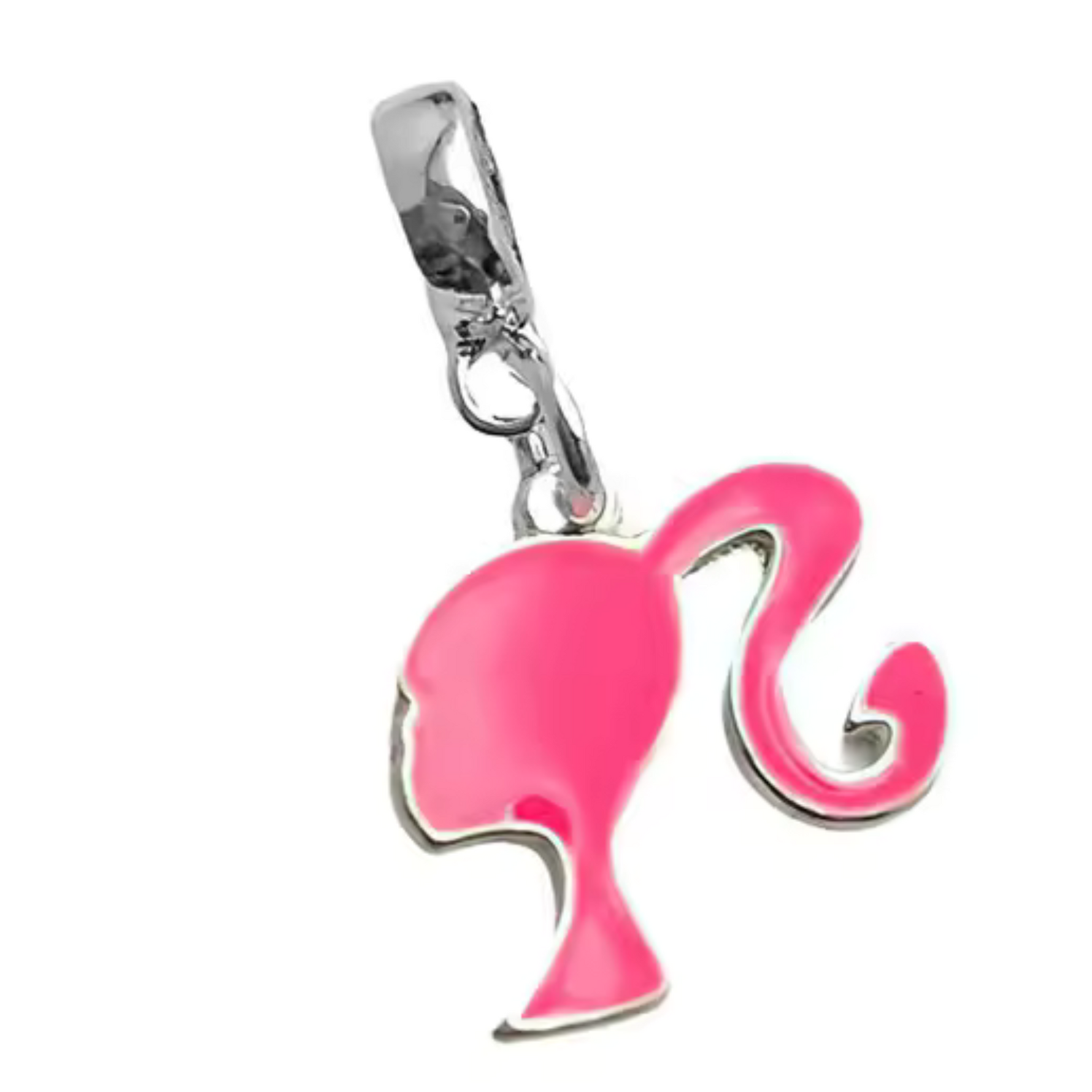 Express your passion for Barbie with this charm featuring her signature icon. Crafted in sterling silver, this piece of jewelry is a love letter to the world of Barbie and her timeless style.