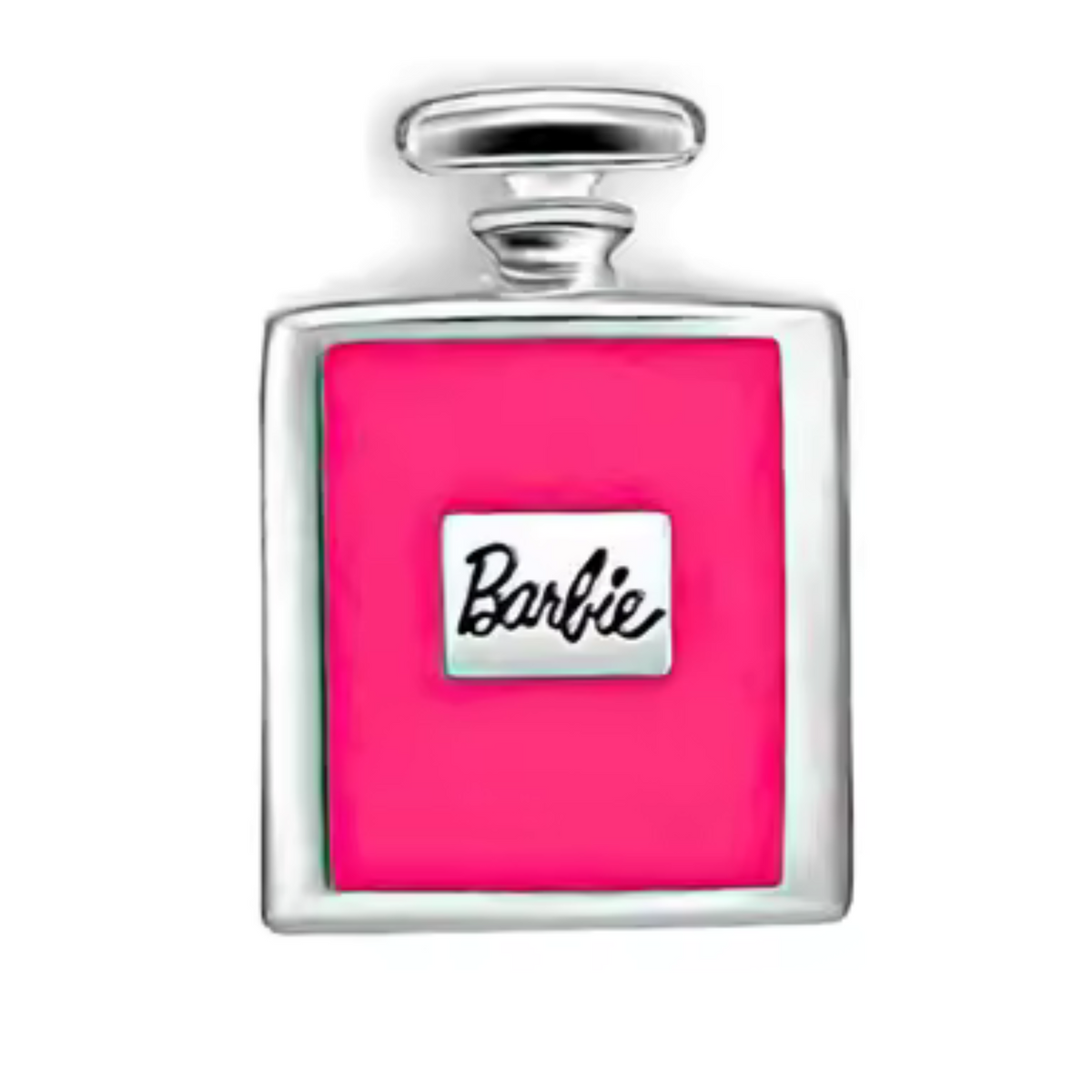 Add a touch of glamour to your collection with this Barbie perfume bottle-inspired charm. Crafted from sterling silver and adorned with elegant details, this piece evokes Barbie's chic and refined world, perfect for lovers of fashion and timeless elegance.