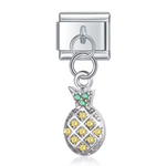 This exotic Italian charm pendant features a refined pineapple, a symbol of conviviality and good humor. Available in three finishes—gold, silver, and rose gold—it's crafted from high-quality stainless steel with finely crafted details and a dazzling shine. Easy to attach, it swings gently to add movement and a tropical touch to your bracelet, which is made of 17 expandable and adjustable links. Compatible with all our Italian charms, this piece is ideal for adding an elegant, fruity, and sunny touch to your collection.
