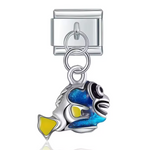 This silver-plated Italian charm pendant features the iconic blue Dory, a symbol of joy and underwater adventure. Crafted from high-quality stainless steel with a shiny silver finish and carefully applied colorful details, it combines strength and whimsy. Easy to attach, it fits perfectly with our bracelets, which feature 17 expandable and adjustable links, making them suitable for all wrist sizes. Compatible with all our Italian charms, this unique piece of jewelry is ideal for adding a playful, marine-inspired touch to your bracelet.