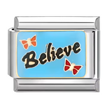 Silver Italian Charm – “Believe” on blue background with butterfly