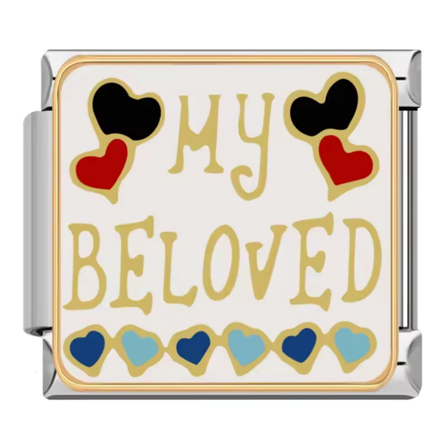 Express all your love and tenderness with this beautiful silver-finished Italian charm , adorned with the delicate inscription “My Beloved” accompanied by a small, bright red heart . This symbolic jewel is an elegant way to always keep your feelings close to you or to offer a unique declaration of affection to someone special.