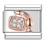This silver-tone Italian charm features an elegant perfume bottle, a symbol of glamour and sophistication. Crafted from high-quality stainless steel with a glossy finish, it combines strength and refined details for a timeless piece of jewelry. Easy to attach, it fits perfectly with our bracelets, which feature 17 expandable and adjustable links, making them suitable for all wrist sizes. Compatible with all our Italian charms, it's perfect for adding a chic and fragrant touch to your bracelet.