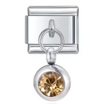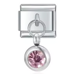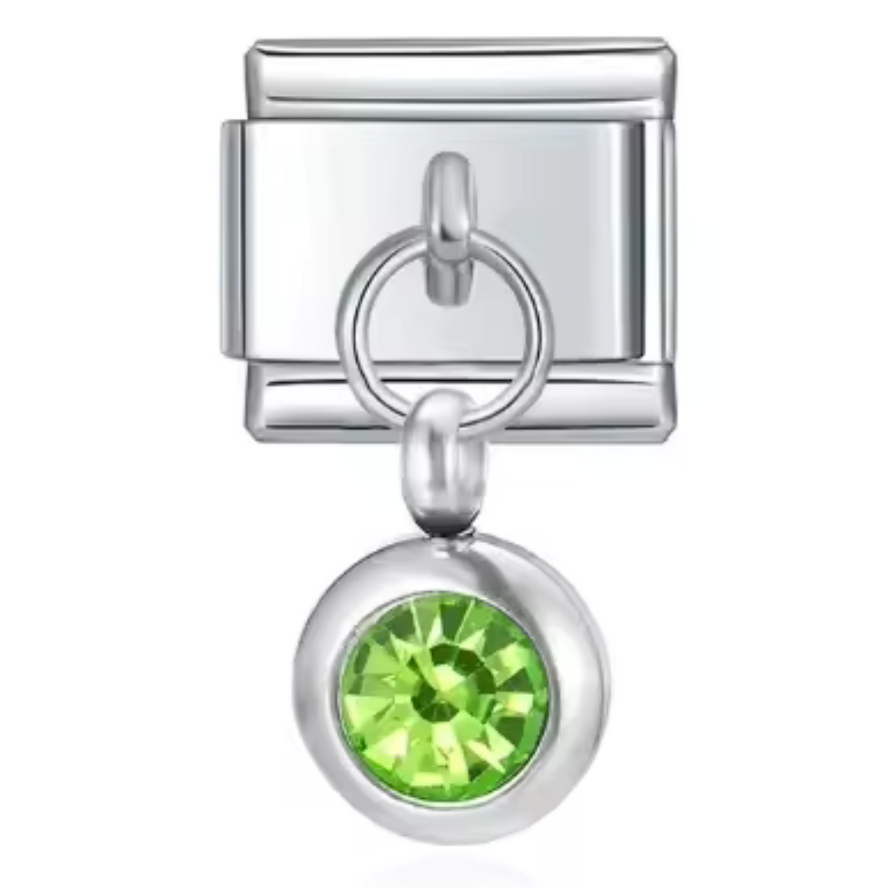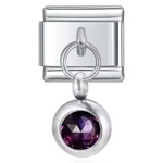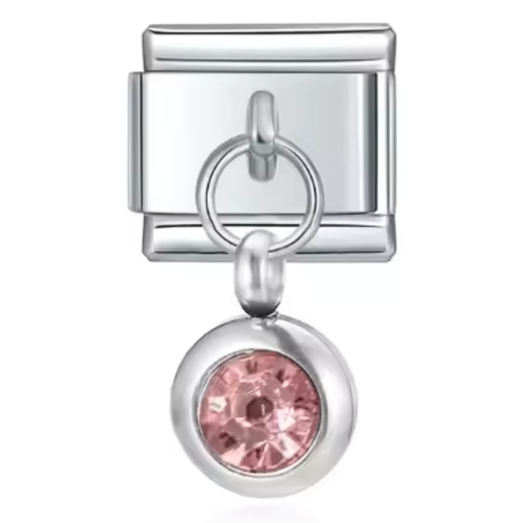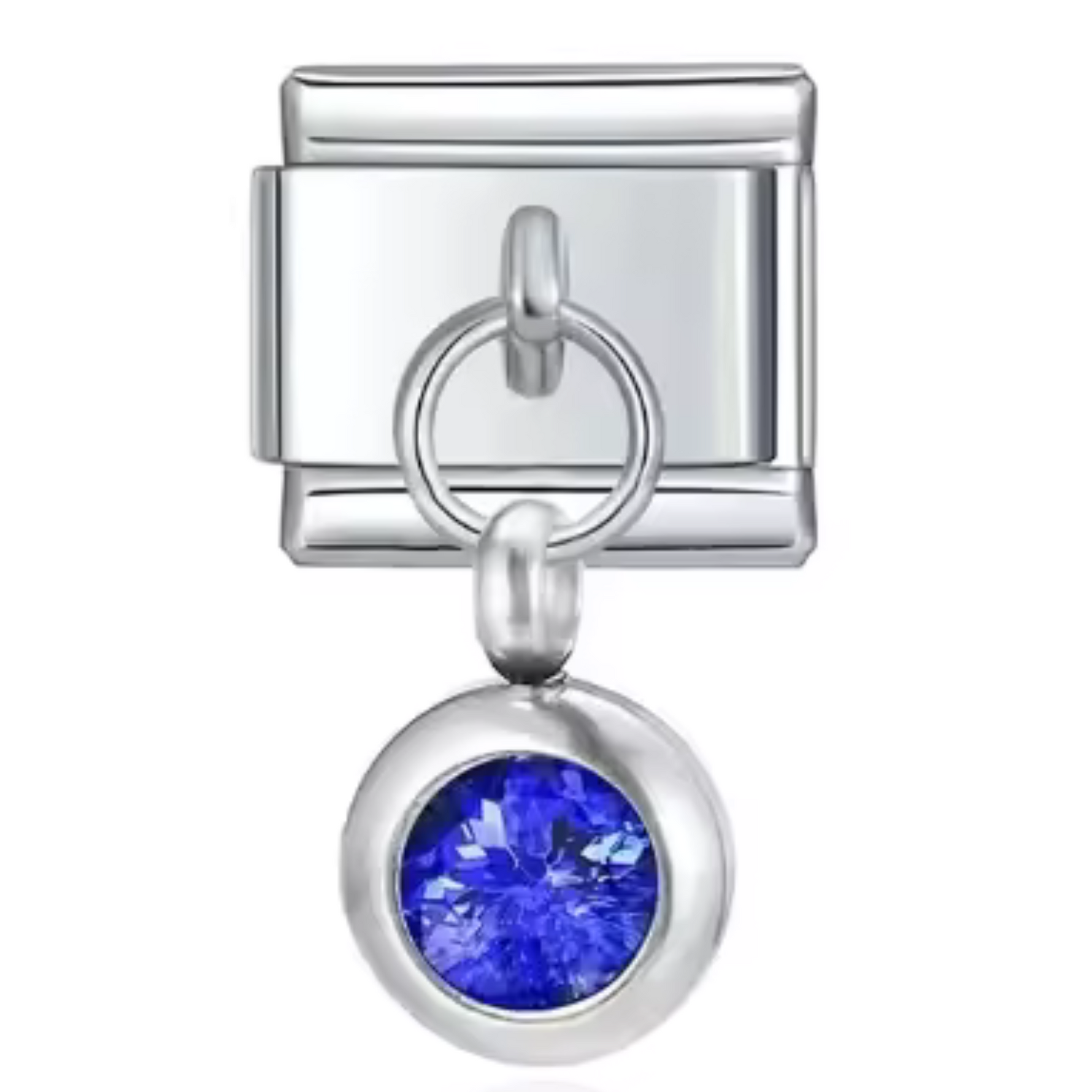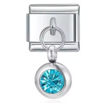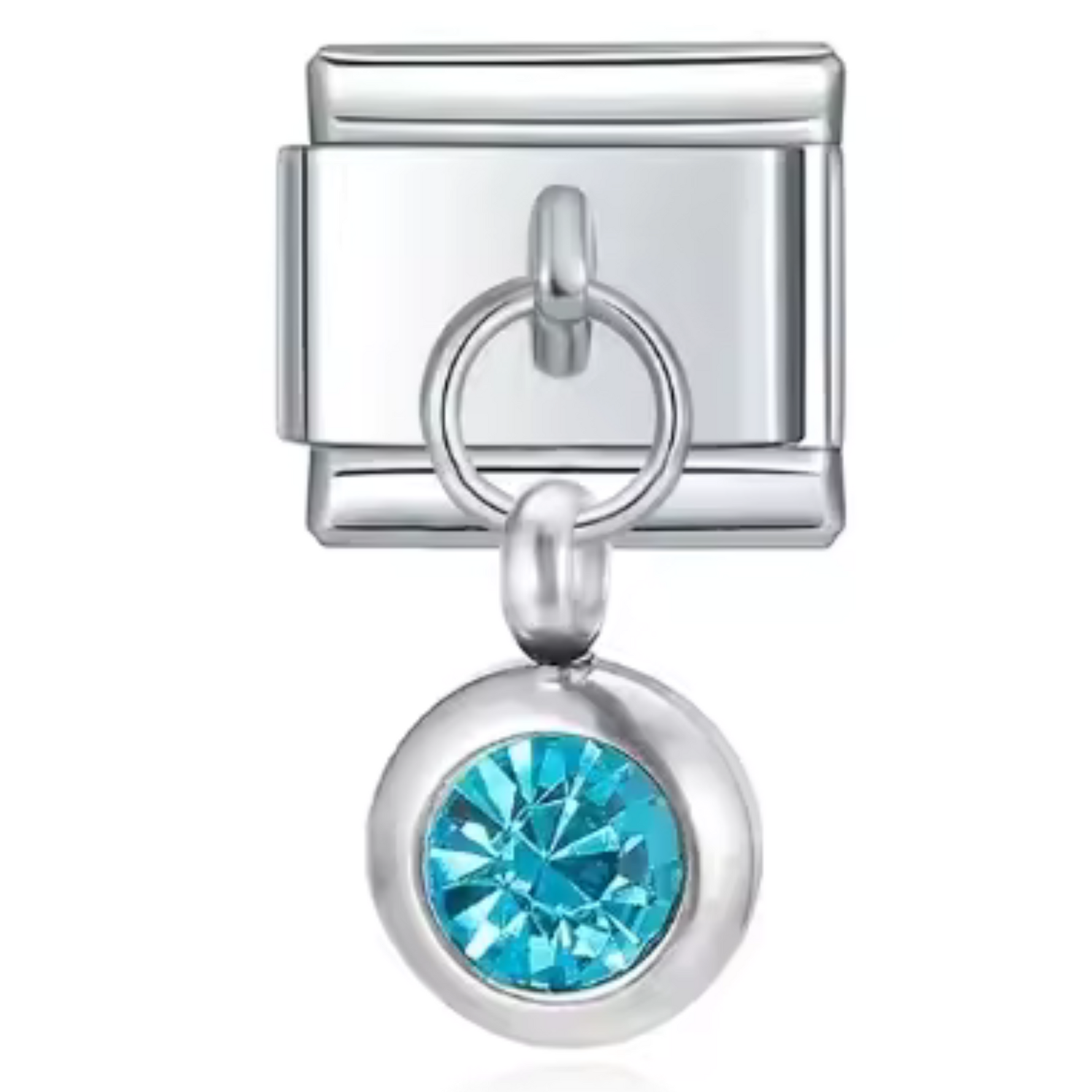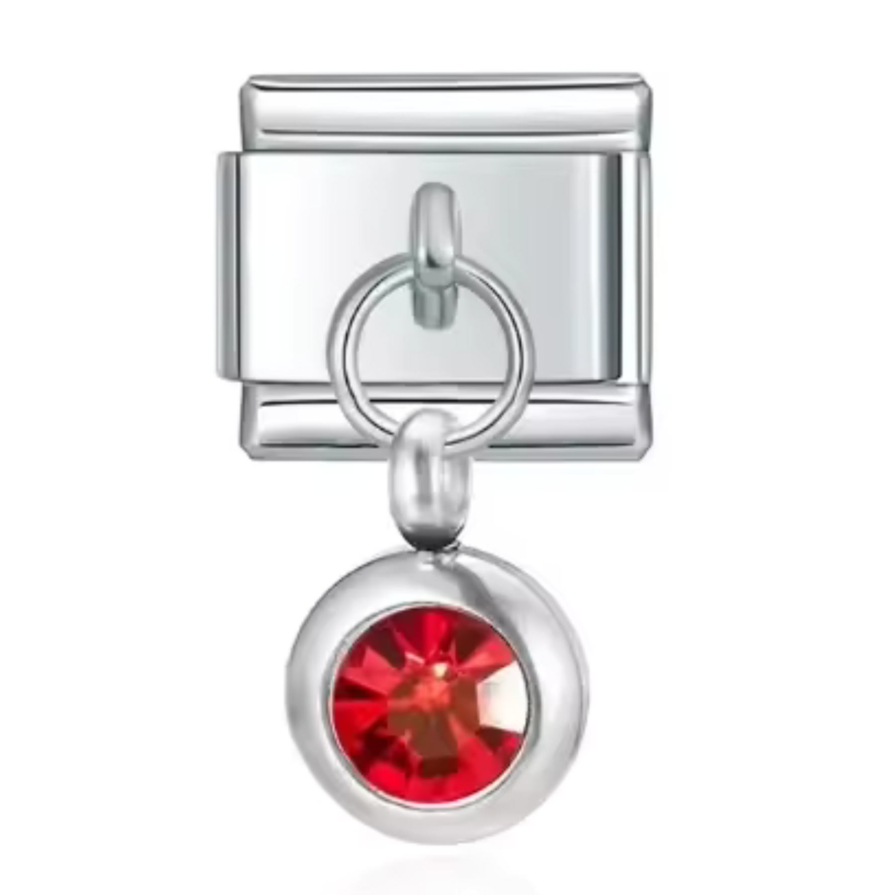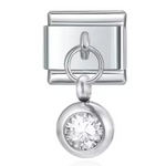 This silver-tone Italian charm features a carefully set birthstone, offering a touch of sophistication and modernity. Its shiny silver finish brings a simple, timeless elegance, ideal for personalizing a bracelet or necklace with deep meaning.