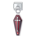 This silver-plated Italian charm pendant features an elegant coffin with a vibrant red finish, perfect for a gothic and original touch. Crafted from high-quality stainless steel with meticulous colored details, it combines strength with unique style. Easy to attach, it fits perfectly with our bracelets made of 17 expandable and adjustable links, suitable for all wrist sizes. Compatible with all our Italian charms, this piece will bring a mysterious and bold vibe to your collection.