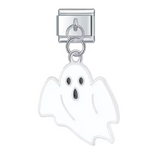 This silver Italian charm pendant features a white ghost with a sleek and elegant design, perfect for adding a sweet and mysterious touch to your bracelet. Made of high-quality stainless steel with a meticulous finish, it combines strength and delicacy for a durable and fashionable piece of jewelry. Easy to attach, it fits perfectly with our bracelets made of 17 expandable and adjustable links, suitable for all wrist sizes. Compatible with all our Italian charms, this pendant is ideal for personalizing your collection with a spooky and elegant touch.