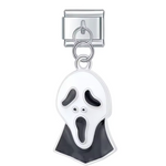 This silver-plated Italian charm pendant features the iconic mask of Ghostface, a famous horror movie character. Crafted from high-quality stainless steel with a meticulous finish, it combines strength and precise details for a terrifying and stylish look. Easy to attach, it fits perfectly with our bracelets, which feature 17 expandable and adjustable links, suitable for all wrist sizes. Compatible with all our Italian charms, this pendant is perfect for fans of thrills and cult films.