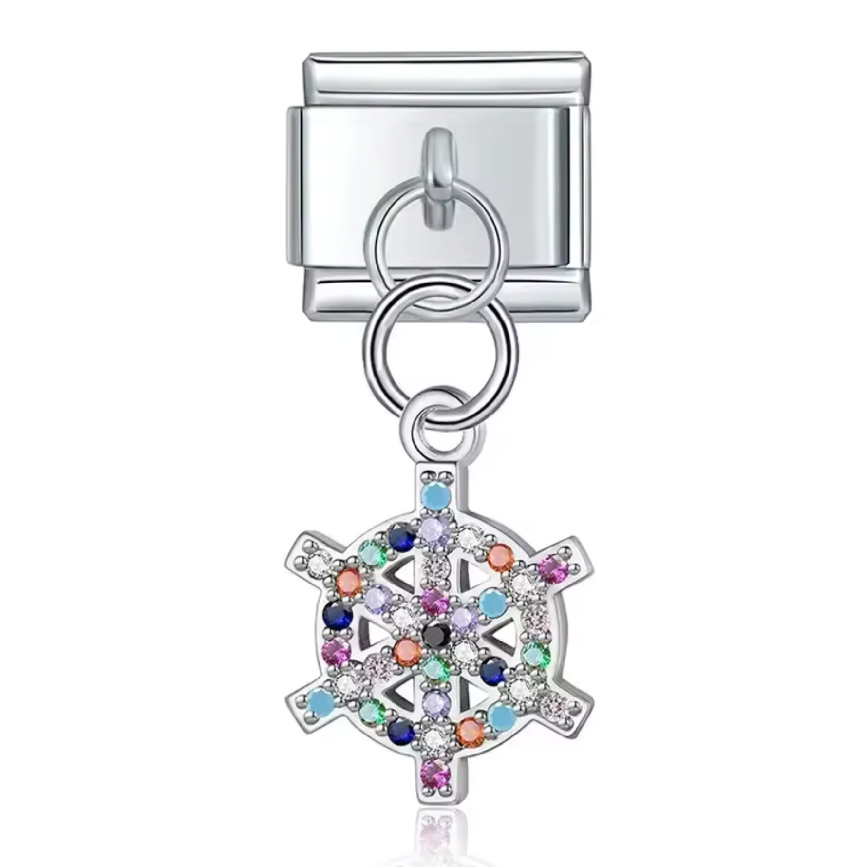 This Italian charm pendant, available in silver or gold finishes, represents a rudder, a symbol of adventure, freedom, and control of one's destiny. Crafted from high-quality stainless steel with a glossy finish, it combines strength with nautical elegance. Easy to attach, it fits perfectly with our bracelets, made of 17 expandable and adjustable links, suitable for all wrist sizes. Compatible with all our Italian charms, this piece of jewelry adds a refined, nautical touch to your bracelet.