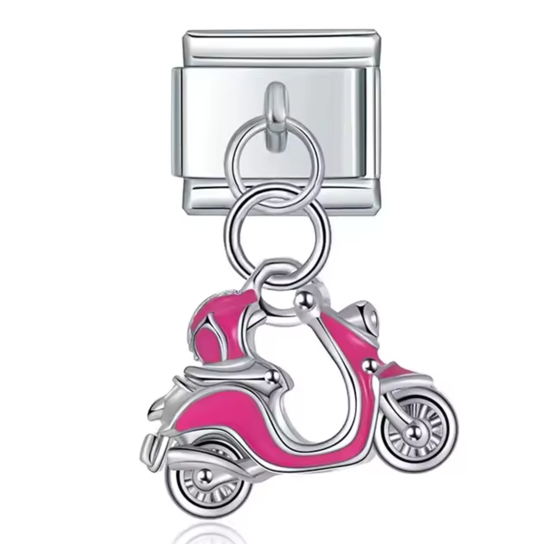 Italian Charm Silver Pendant – Pink Scooter