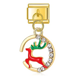 This gold-plated Italian charm pendant features an elegant deer adorned with a festive red accent, a vibrant symbol of the magic of Christmas and winter. Crafted from high-quality stainless steel with a shiny gold finish and colorful details, it combines strength with festive charm. Easy to attach, it fits perfectly with our bracelets, which are made of 17 expandable and adjustable links, suitable for all wrist sizes. Compatible with all our Italian charms, this piece of jewelry adds a warm and unique touch to your bracelet to celebrate the holidays in style.