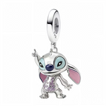 Entdecke Stitchs ganze Verschmitztheit und Zärtlichkeit in diesem einzigartigen Charm, der perfekt ist, um deine lustige und originelle Seite zum Ausdruck zu bringen. Seine funkelnden Augen, seine großen rosa Ohren und seine dynamischen Gesten verleihen jedem Armband eine echte Portion Positivität. Lila Muster auf seinem Bauch unterstreichen die hawaiianische Inspiration und den Ohana-Geist und sorgen für einen frischen, fröhlichen und liebevollen Look.