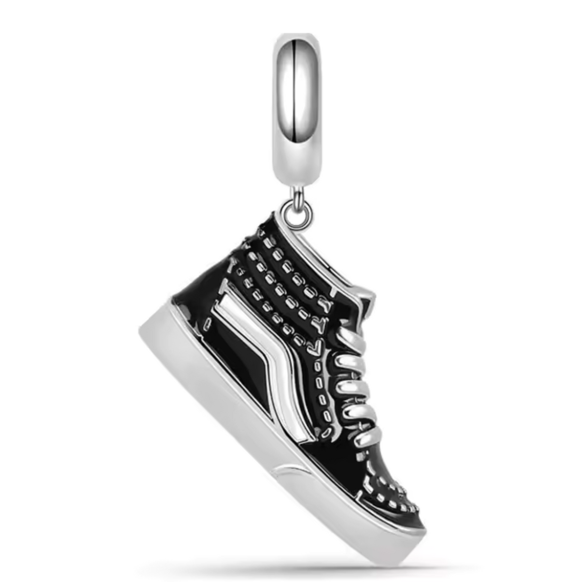 Verleihen Sie Ihrem Armband mit diesem Vans-Sneaker-Charm einen Hauch von urbanem Stil. Dieser von legendären Skateschuhen inspirierte Anhänger aus Sterlingsilber ist perfekt für Liebhaber von Streetwear und Freizeitmode.
