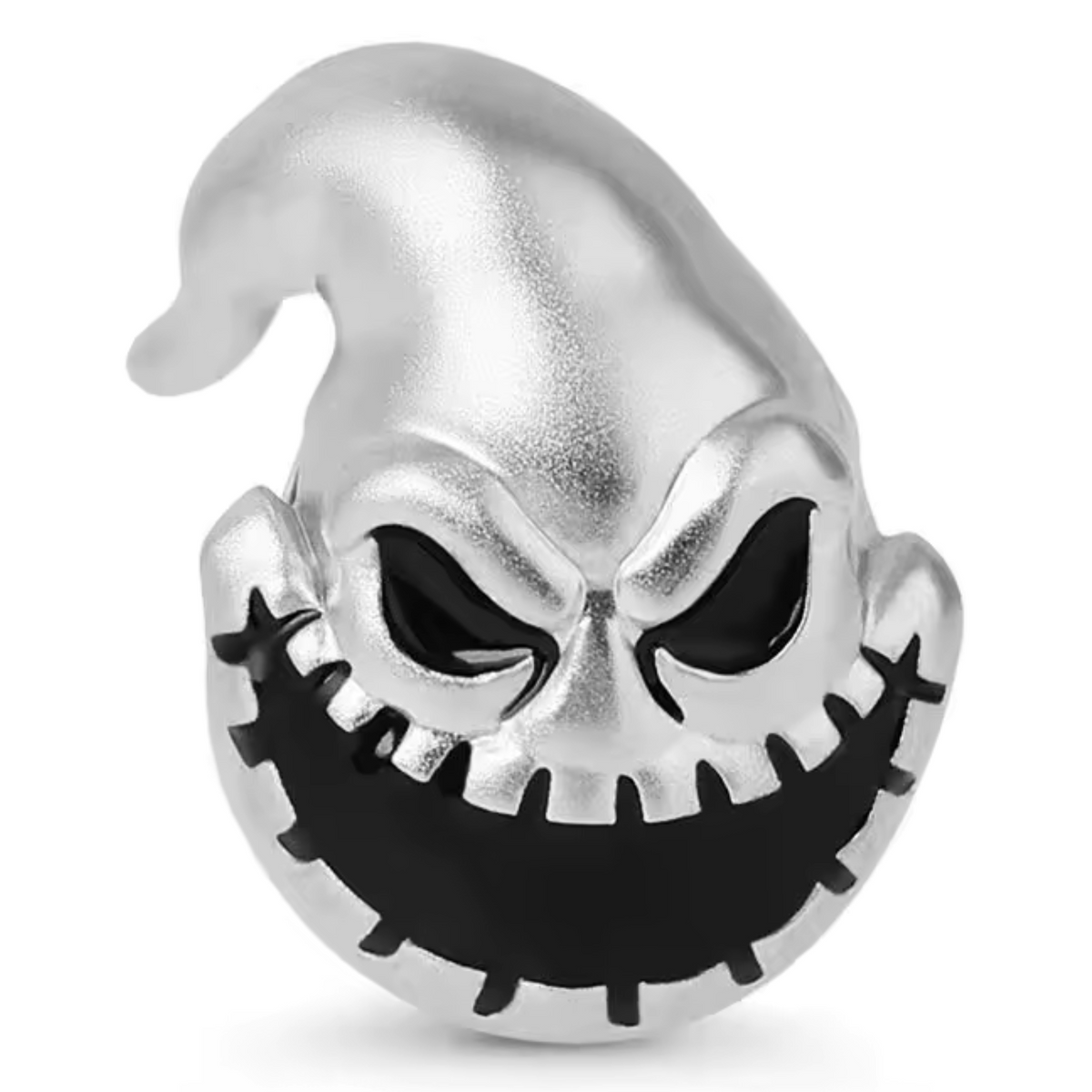 Verleihen Sie Ihrer Sammlung mit diesem Anhänger von Oogie Boogie, dem legendären Bösewicht aus „Nightmare Before Christmas“, einen Hauch von boshaftem Schrecken. Dieser Anhänger aus 925er Sterlingsilber fängt das finstere, knurrende Aussehen der Kultfigur ein, komplett mit sichtbaren Nähten und einem teuflischen Grinsen.