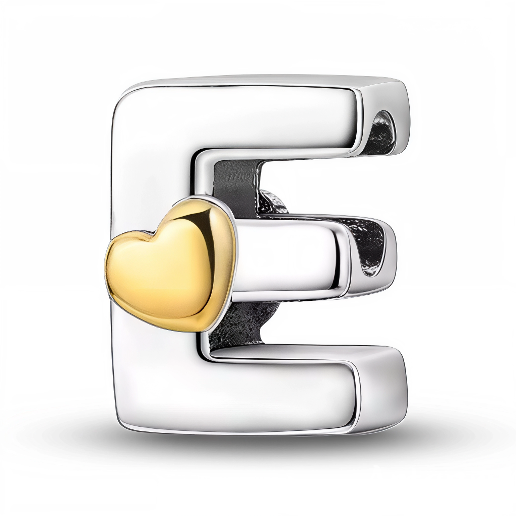 Charm - Buchstabe "E" Silber mit kleinem goldenen Herz
