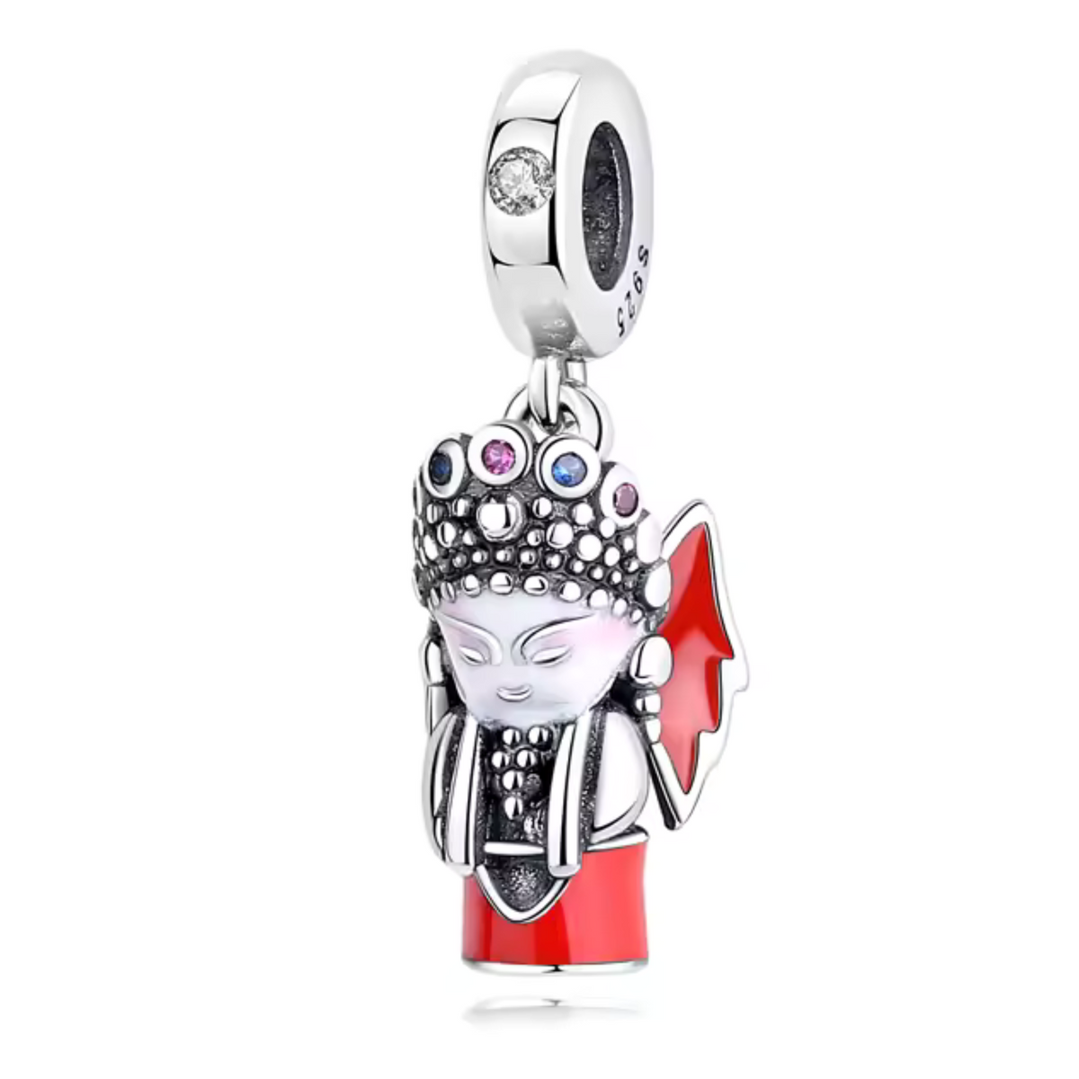 Dieser einzigartige Anhänger ist eine Hommage an die traditionelle chinesische Oper und wird durch eine reich gekleidete und detailverliebte Figur verkörpert. Es ist aus 925er Silber gefertigt und besticht durch seine tiefroten Emaille-Akzente, seine funkelnden Ornamente und seine mehrfarbigen Akzente, die Adel und Geschichte symbolisieren.