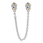 Verleihen Sie Ihrem Armband mit dieser wunderschönen Sicherheitskette mit gelben Blumen einen Hauch von Frische und Sonnenschein. Die Kette aus Sterlingsilber besticht durch zart geformte Blumen, deren leuchtend gelbe Blütenblätter Freude, Energie und die Schönheit der Natur symbolisieren.
