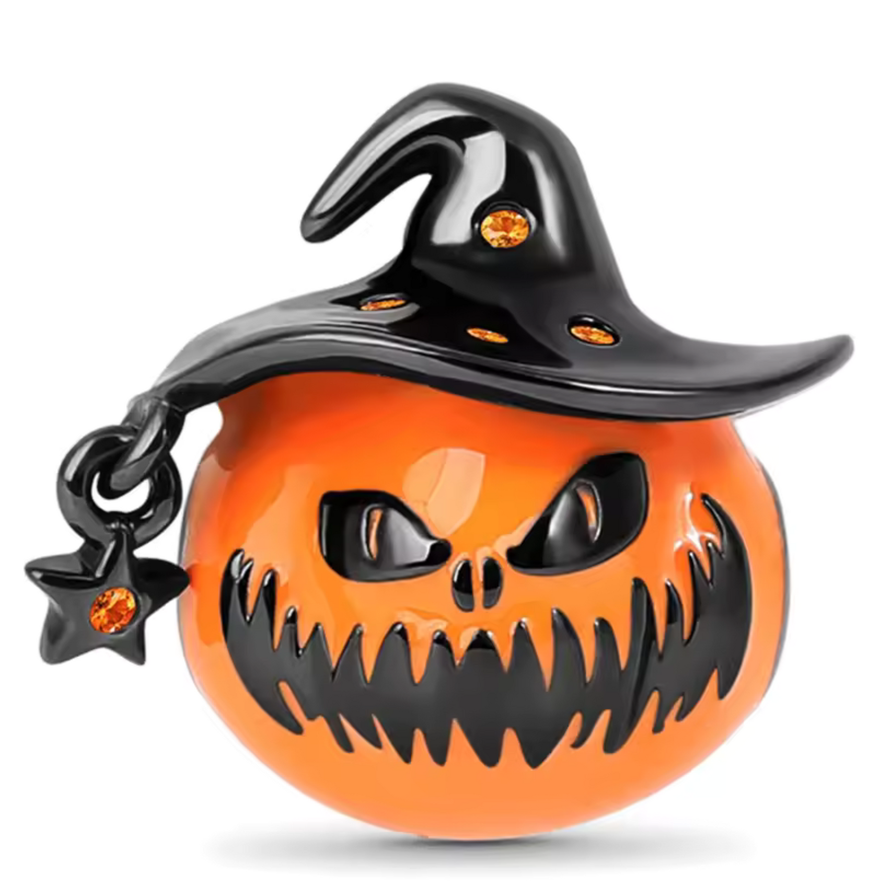 Verleihen Sie Ihrer Sammlung mit diesem Halloween-Kürbis-Anhänger mit Hexenhut eine gruselige Note.