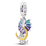 Entdecken Sie diesen faszinierenden Anhänger, der einen Drachen zeigt, der sich um eine schimmernde Mondsichel windet. Fein geformt aus Sterlingsilber und mit farbenfroher Emaille verziert, verkörpert dieses Schmuckstück Kraft, Mysterium und himmlische Eleganz.