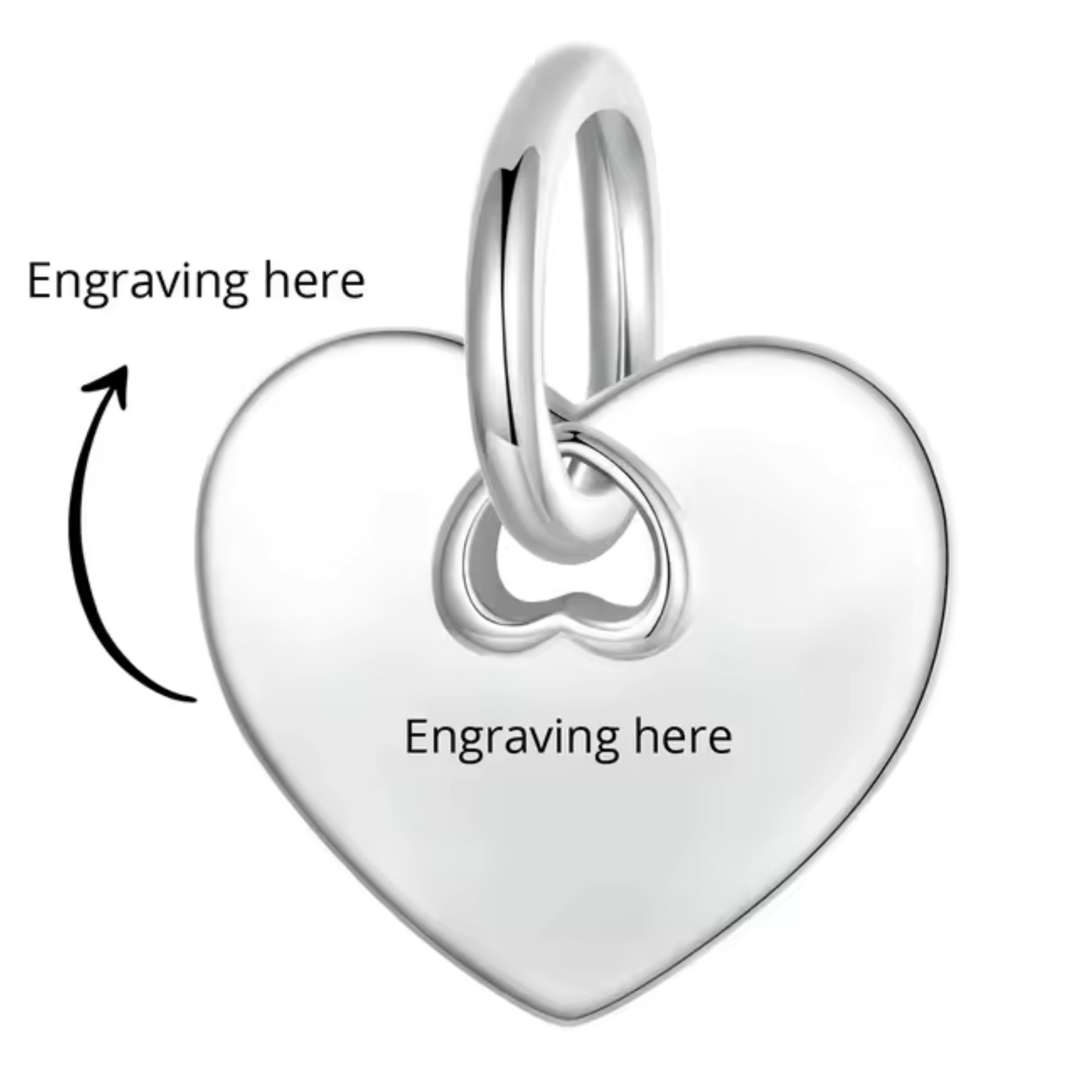 Verleihen Sie Ihrem Armband mit diesem herzförmigen Anhänger eine persönliche Note, der durch eine einzigartige Gravur personalisiert werden kann.