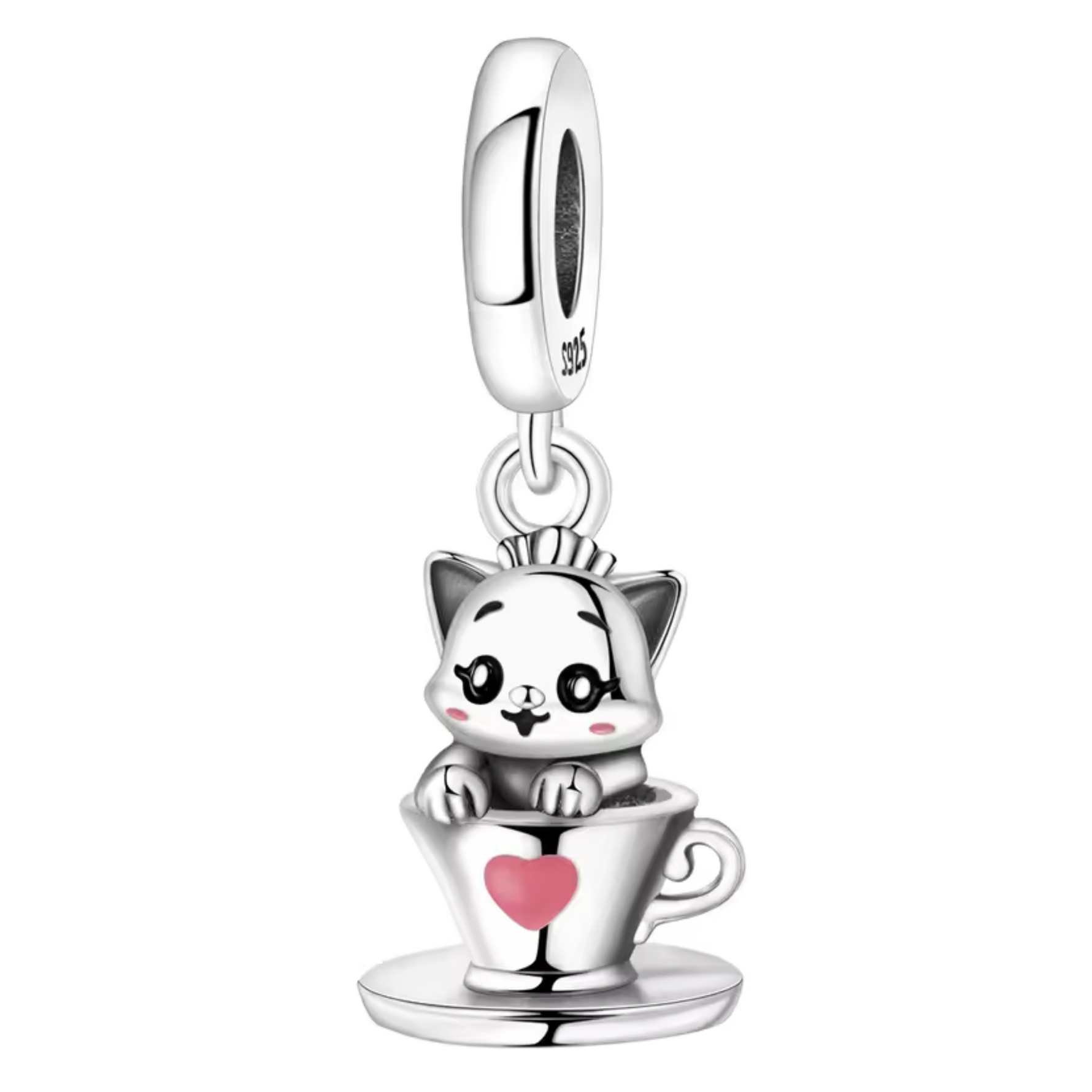 Verlieben Sie sich in diesen bezaubernden Charm, der ein kleines Kätzchen in einer Tasse darstellt. Dieses zarte Schmuckstück verbindet die Liebe zu Katzen mit der Wärme gemütlicher Momente. Perfekt für Katzenliebhaber und Liebhaber süßer Gegenstände verleiht dieser zarte Charm Ihrem Armband oder Ihrer Halskette einen Hauch von Weichheit und Verspieltheit.