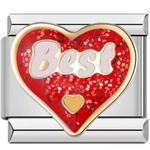 Silberner italienischer Charm – „Best“ in rotem Herz