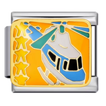Dieser silberfarbene italienische Charm aus Edelstahl zeigt einen stilisierten Helikopter mit fünf Sternen – eine subtile Hommage an das legendäre GTA-Universum. Dieses Schmuckstück vereint urbanes Design mit Kühnheit und verleiht Ihrem Armband Charakter und Originalität. Es lässt sich leicht anbringen und passt perfekt zu all unseren italienischen Armbändern mit 17 dehnbaren und verstellbaren Gliedern. Kompatibel mit all unseren italienischen Charms, wird dieser Charm Fans von Popkultur und zeitgenössischem Stil begeistern.