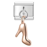 Dieser silberne italienische Charm-Anhänger besticht durch einen Absatz aus Roségold – ein Symbol für Eleganz und Weiblichkeit. Gefertigt aus hochwertigem Edelstahl vereint er die Stärke von Silber mit seiner Weichheit zu einem einzigartigen und raffinierten Schmuckstück. Er lässt sich leicht befestigen und passt perfekt zu unseren Armbändern. Er besteht aus 17 dehnbaren und verstellbaren Gliedern und ist für alle Handgelenkgrößen geeignet. Ideal, um Ihrem Armband einen schicken und trendigen Touch zu verleihen.