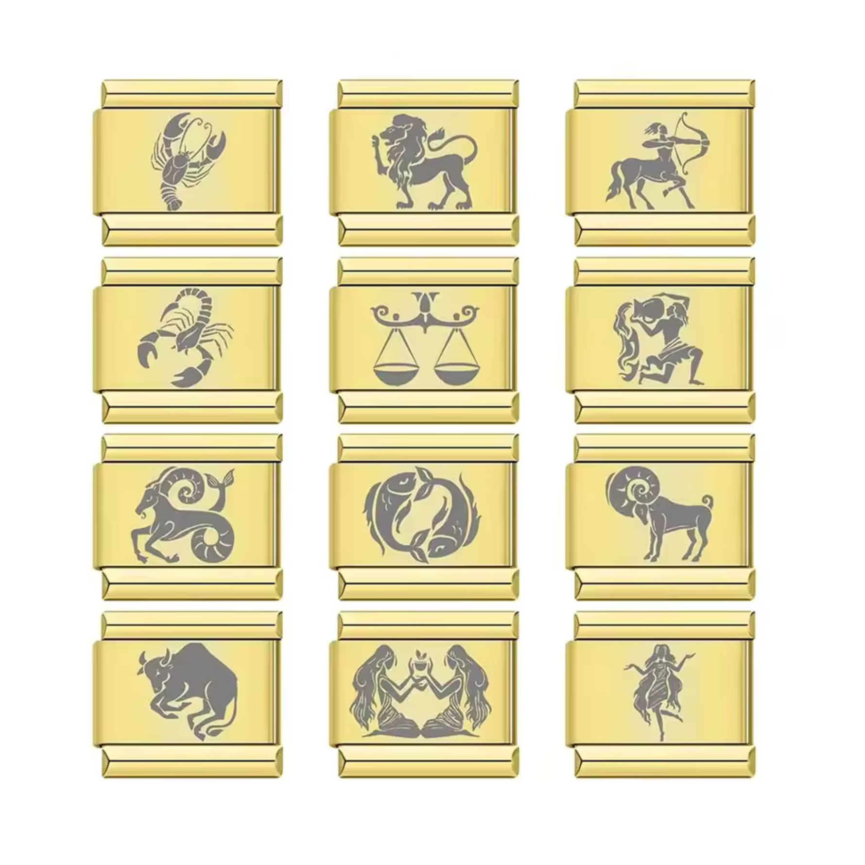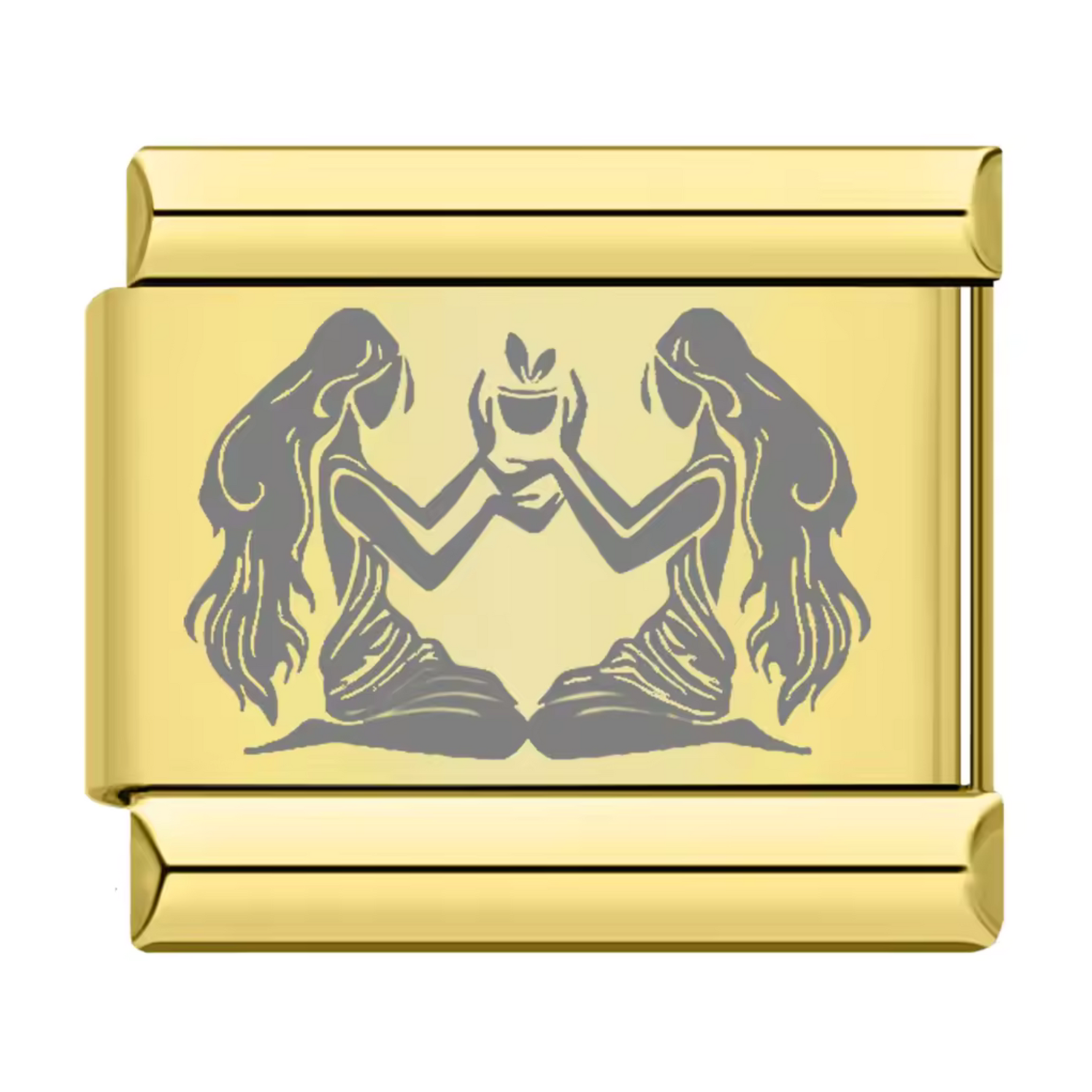 Dieser goldfarbene italienische Charm aus Edelstahl zeigt ein elegantes und symbolträchtiges Sternzeichen und bringt Ihre Persönlichkeit und Ihre Verbindung zu den Sternen perfekt zum Ausdruck. Mit seinen sorgfältigen Details und dem glänzenden Finish verleiht er Ihrem Armband eine himmlische und raffinierte Note. Er ist leicht zu befestigen und passt perfekt zu unseren Armbändern mit 17 dehnbaren und verstellbaren Gliedern, passend für alle Handgelenkgrößen. Dieses Schmuckstück ist mit all unseren italienischen Charms kompatibel und eignet sich ideal, um Ihrem Armband einen mystischen und einzigartigen Stil zu verleihen.