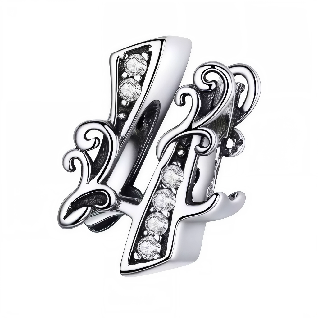 Personalisieren Sie Ihr Armband mit diesem Charm in Form der Zahl „4“ aus 925er Silber. Ein raffiniertes und diskretes Schmuckstück, perfekt, um eine bedeutende Zahl oder einen wichtigen Moment in Ihrem Leben zu symbolisieren.