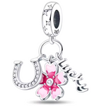 Verleihen Sie Ihrer Sammlung einen Hauch von Glück und Schönheit mit diesem einzigartigen Charm, der eine zarte Blume, ein Hufeisen und die Aufschrift „Lucky“ kombiniert. Dieses Schmuckstück aus 925er Silber symbolisiert Glück, Positivität und Eleganz, perfekt für alle, die an ihr Schicksal als „Lucky Girl“ glauben.
