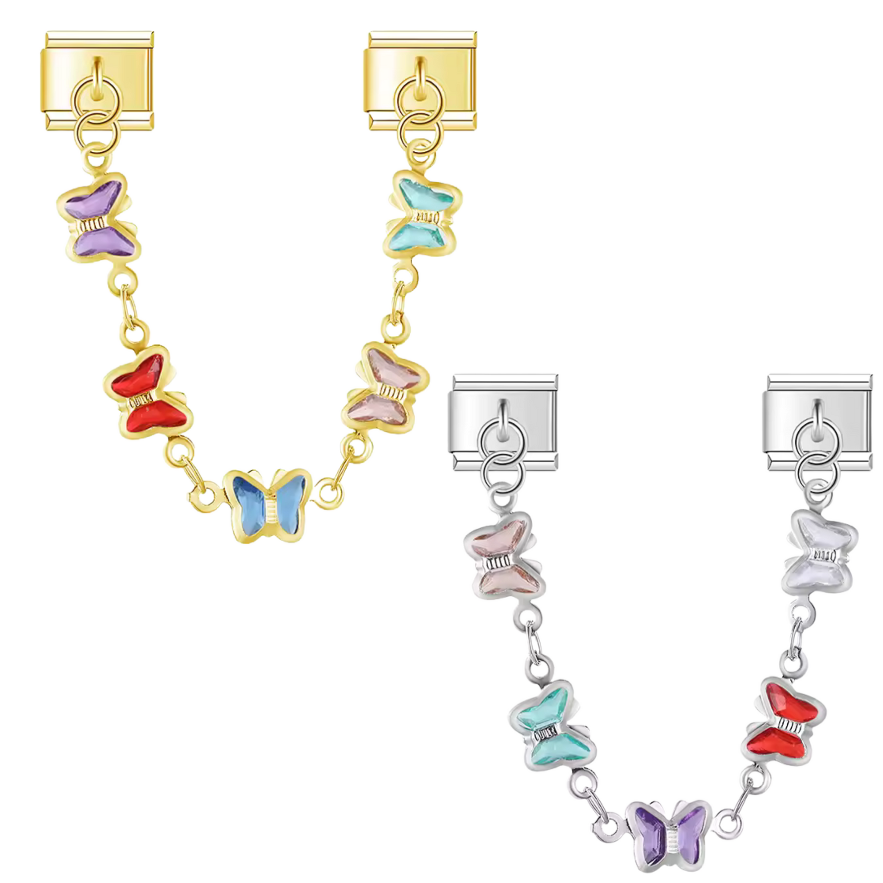 Italienischer Charm – Gold- oder Silberkette mit buntem Schmetterling