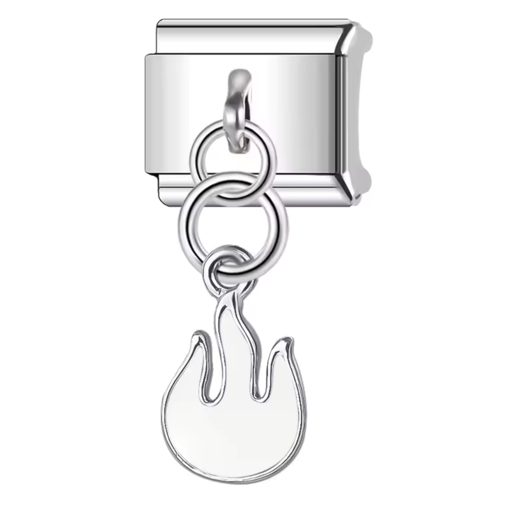 Dieser italienische Charm-Anhänger präsentiert stilisierte Flammen in Silberoptik und ist in drei leuchtenden Farben erhältlich: Rot, Weiß und Schwarz. Gefertigt aus hochwertigem Edelstahl vereint er Robustheit mit präzisen Details für einen modernen und markanten Look. Er lässt sich leicht befestigen und passt perfekt zu unseren Armbändern. Er besteht aus 17 dehnbaren und verstellbaren Gliedern und ist für alle Handgelenkgrößen geeignet. Dieses energiegeladene Stück ist mit all unseren italienischen Charms kompatibel und verleiht Ihrem personalisierten Armband einen Hauch von Feuer und Persönlichkeit.