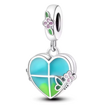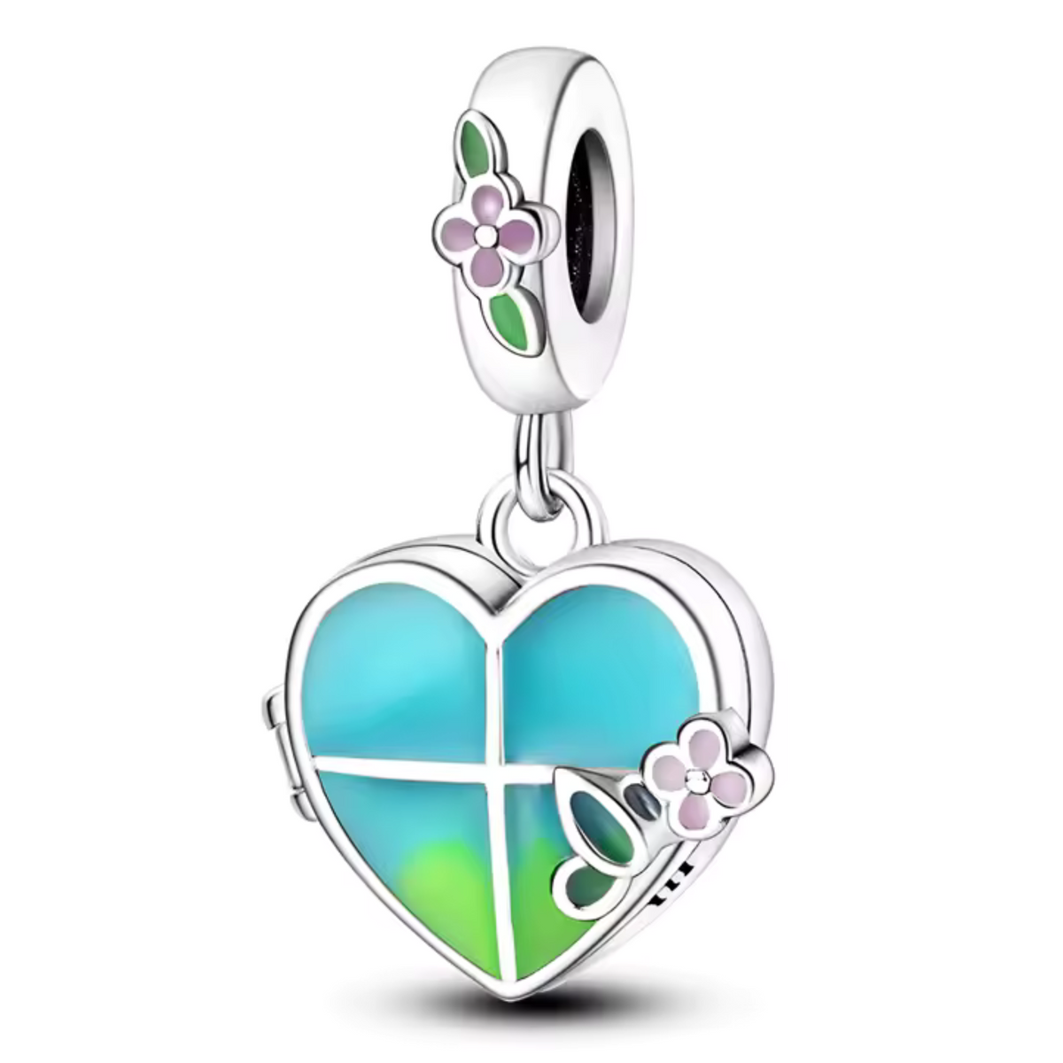 Blau-Grüner Herz-Anhänger Charm mit Blume