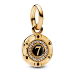 Setzen Sie auf Eleganz mit diesem goldenen Pokerchip-Anhänger, der perfekt dazu geeignet ist, einen mutigen und originellen Stil zu unterstreichen. Es ist aus 925er Silber mit einem schillernden Gold-Finish gefertigt und verkörpert sowohl Luxus als auch die Leidenschaft für das Glücksspiel. Dieser edle Anhänger passt zu den meisten Bettelarmbändern und ist ein ideales Geschenk für Casino-Enthusiasten oder Menschen mit einer verspielten Ader.