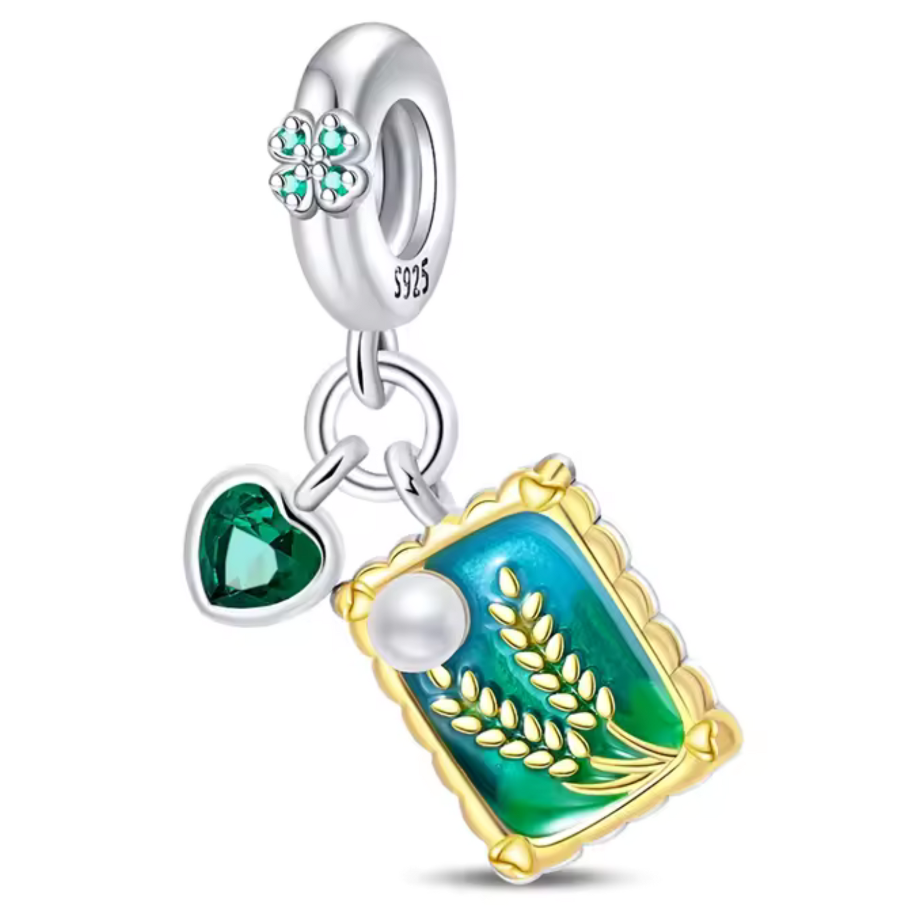 Verleihen Sie Ihrem Armband mit diesem 925er Silber-Gemälde-Charm einen Hauch von Natur und Symbolik. Es zeigt ein goldenes Weizenfeld mit einem grünen Herzen. Als Symbol für Wohlstand, Erneuerung und Hoffnung erinnert dieses Juwel an den Reichtum der Erde und die Energie des Herzens.