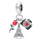 Verleihen Sie Ihrer Sammlung mit diesem Charm, der den Eiffelturm, eine Rose und eine Kamera kombiniert, eine romantische und künstlerische Note. Als Symbol für Paris, Liebe und Kreativität erinnert dieses Schmuckstück aus 925er Silber an die zeitlose Schönheit der französischen Hauptstadt und die durch die Linse eingefangenen Erinnerungen. Dieser Anhänger ist perfekt für alle, die sich für Reisen, Fotografie oder die Pariser Kultur begeistern, und eine wahre Hommage an die Stadt der Lichter.