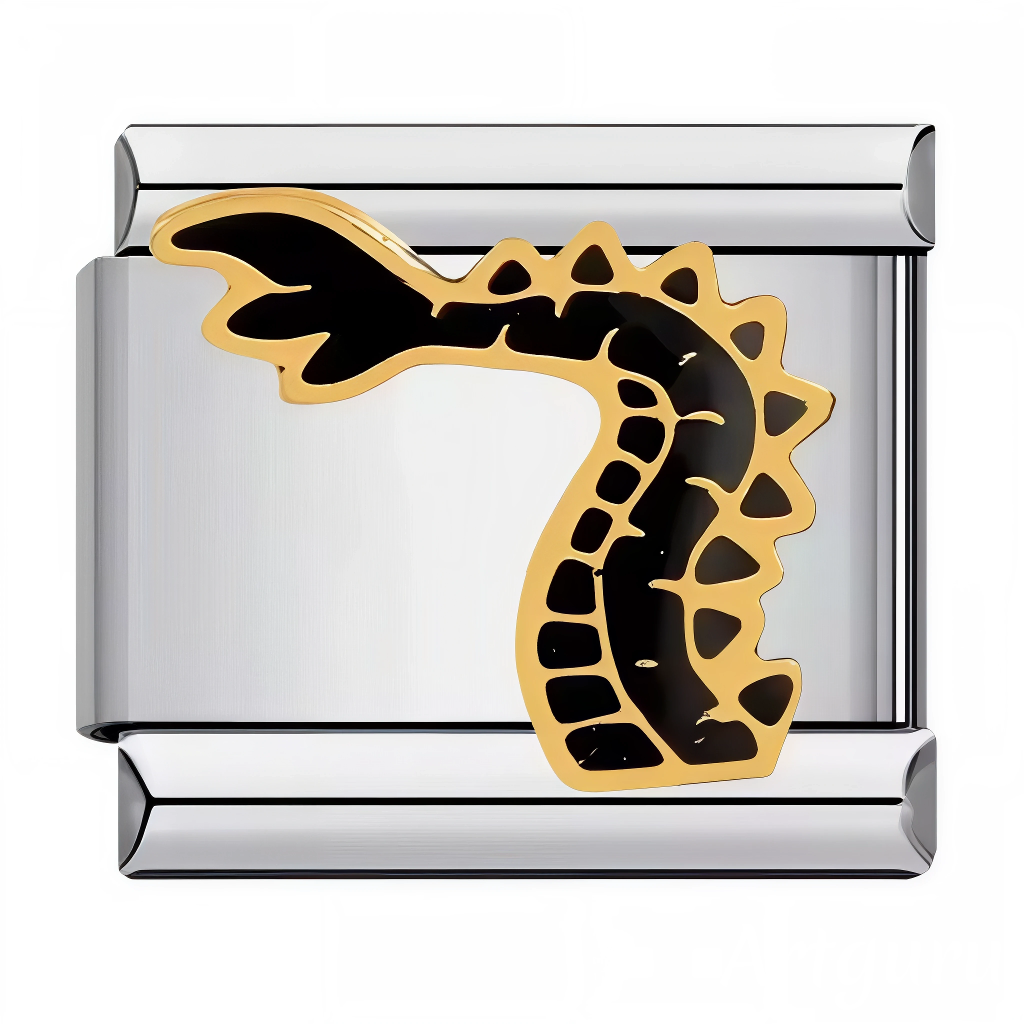 Dieses Set aus 3 italienischen Edelstahl-Charms vereint Eleganz und Mysterium. Jeder Charm zeigt einen Seedrachen mit filigranen Details. Diese Charms erinnern perfekt an die Kraft und Schönheit legendärer Meeresbewohner und verleihen Ihrem Armband eine einzigartige und raffinierte Note. Sie sind leicht zu befestigen und passen perfekt zu unseren Armbändern mit 17 dehnbaren und verstellbaren Gliedern für alle Handgelenkgrößen. Sie sind mit all unseren italienischen Charms kompatibel und eignen sich ideal, um Ihr Armband mit einem maritimen und bezaubernden Stil zu personalisieren.