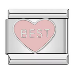 Charm Italien Argenté – “Best” dans un Cœur Rose