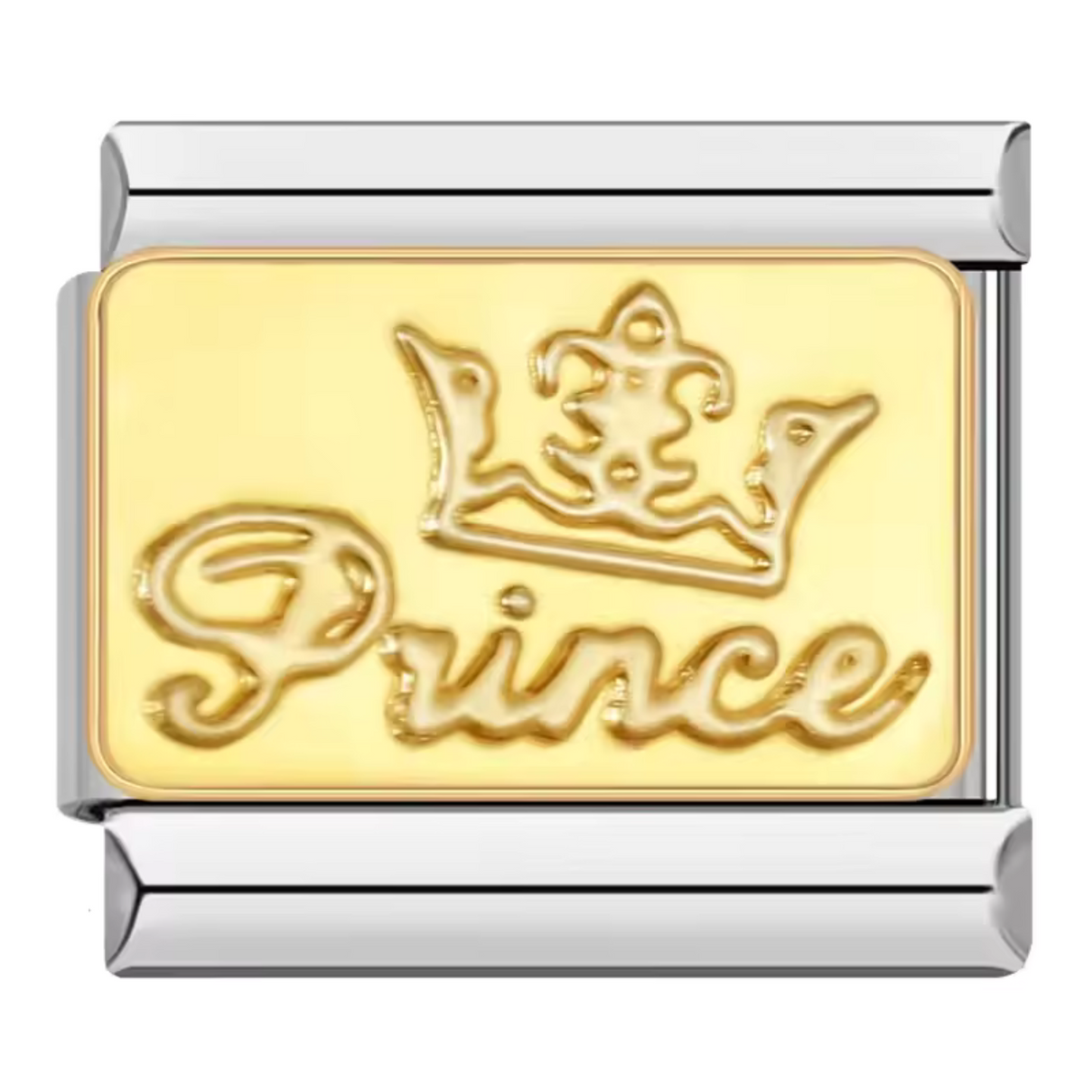 Ce charm italien bicolore associe la finesse de l’argenté et la chaleur du doré pour représenter un prince élégant, symbole de noblesse et de jeunesse. Fabriqué en acier inoxydable de haute qualité, il offre une finition brillante et des détails soignés pour un rendu raffiné. Facile à fixer, il s’adapte parfaitement à nos bracelets composés de 17 maillons extensibles et réglables, convenant à toutes les tailles de poignet. Compatible avec tous nos charms italiens, ce bijou est idéal pour personnaliser votre bracelet avec une touche royale et distinguée.