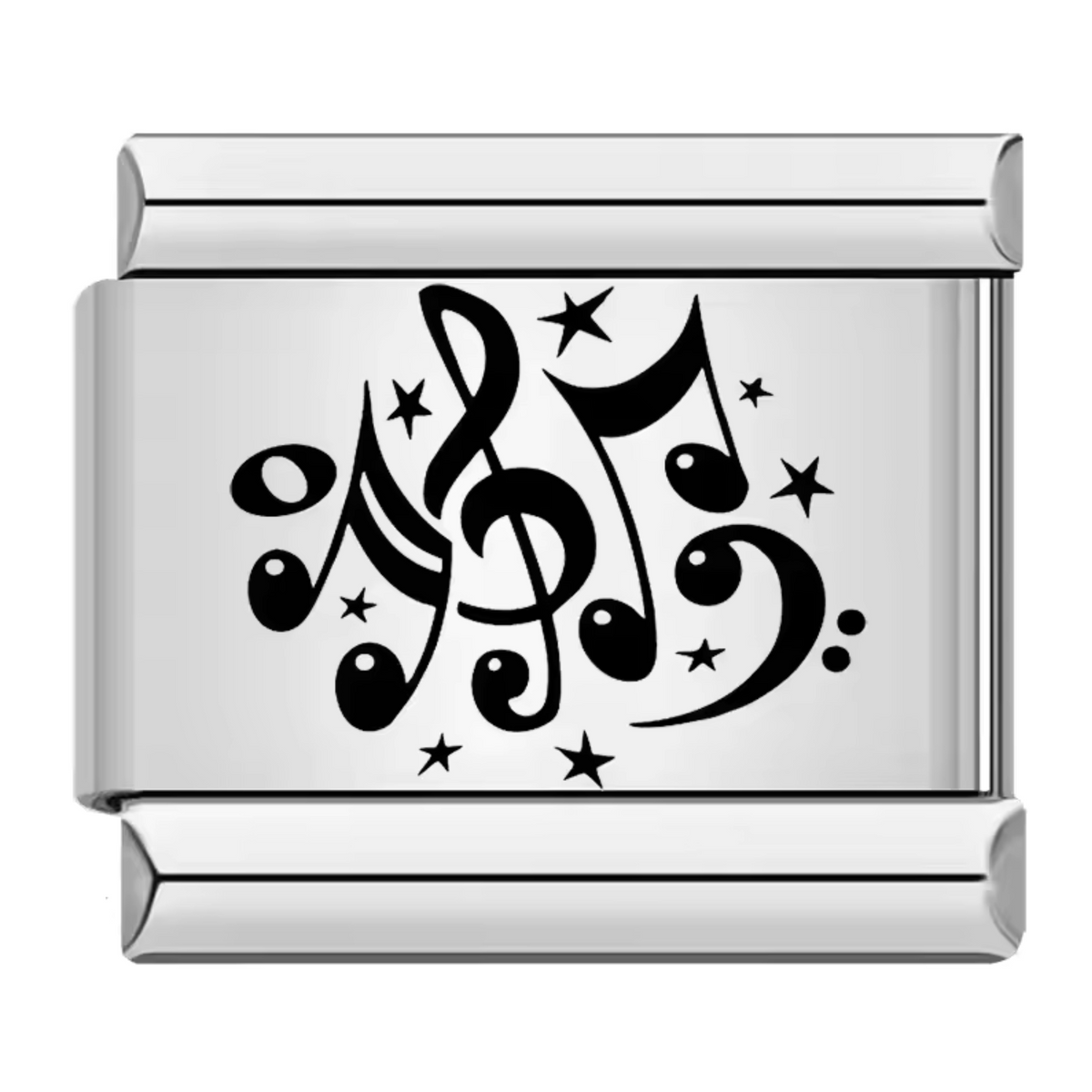Ce charm italien argenté représente une élégante note de musique, symbole de passion et d’harmonie. Fabriqué en acier inoxydable de haute qualité avec une finition argentée brillante, il allie robustesse et raffinement. Facile à fixer, il s’adapte parfaitement à nos bracelets composés de 17 maillons extensibles et réglables, convenant à toutes les tailles de poignet. Compatible avec tous nos charms italiens, ce bijou est idéal pour personnaliser votre bracelet avec une touche musicale et élégante.