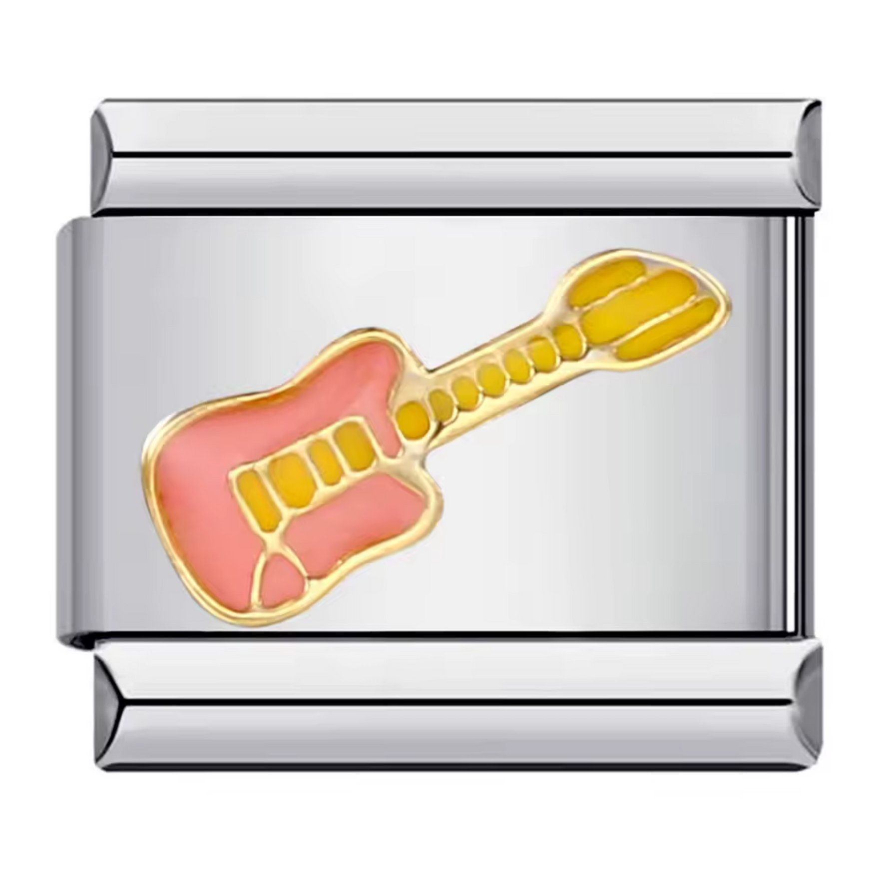 Ce charm italien, disponible en versions argentée ou dorée, représente une guitare élégante, symbole de musique et de créativité. Fabriqué en acier inoxydable de haute qualité avec une finition brillante, il allie robustesse et style raffiné. Facile à fixer, il s’adapte parfaitement à nos bracelets composés de 17 maillons extensibles et réglables, convenant à toutes les tailles de poignet. Compatible avec tous nos charms italiens, ce bijou est idéal pour personnaliser votre bracelet avec une note musicale originale.
