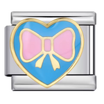 Ce charm italien en acier inoxydable argenté met en valeur un tendre cœur bleu délicatement orné d’un petit nœud rose. Symbole d’amour et de douceur, ce bijou apporte une touche de couleur et de charme à votre bracelet. Son design raffiné et féminin permet de personnaliser votre bijou avec élégance et gaieté. Facile à fixer, il s’adapte parfaitement à tous nos bracelets italiens composés de 17 maillons extensibles et réglables. Compatible avec l’ensemble de nos charms italiens, il ravira les amateurs de détails tendres et colorés.