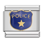 Ce charm italien argenté représente un insigne de police, symbole de protection, d’autorité et de courage. Fabriqué en acier inoxydable de haute qualité avec une finition argentée brillante et des détails précis, il allie robustesse et élégance. Facile à fixer, il s’adapte parfaitement à nos bracelets composés de 17 maillons extensibles et réglables, convenant à toutes les tailles de poignet. Compatible avec tous nos charms italiens, ce bijou est idéal pour ajouter une touche symbolique et distinctive à votre bracelet.