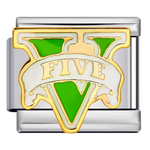 Ce charm italien en acier inoxydable argenté arbore le logo emblématique de GTA 5, symbole de l’univers audacieux et dynamique du jeu vidéo. Son design moderne et précis apporte une touche urbaine et tendance à votre bracelet. Facile à fixer, il s’adapte parfaitement à tous nos bracelets italiens composés de 17 maillons extensibles et réglables. Compatible avec l’ensemble de nos charms italiens, ce bijou est idéal pour les fans de gaming et de culture pop.