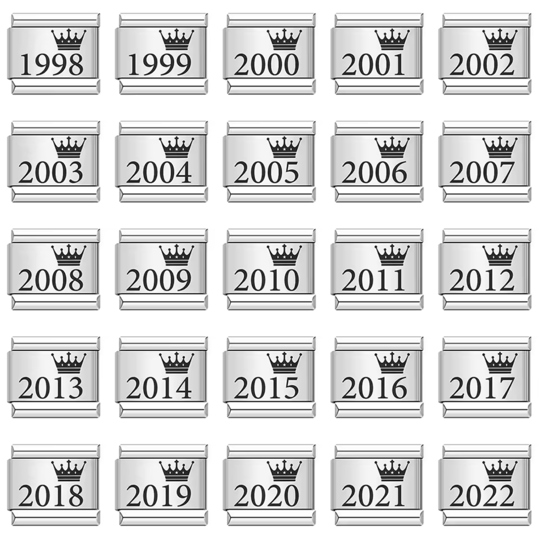 Ce charm italien en finition argentée représente une année, disponible de 1990 à 2025, pour célébrer une date marquante ou un souvenir précieux. Conçu en acier inoxydable de haute qualité, il allie robustesse et élégance pour un rendu intemporel et raffiné. Facile à fixer, il s’adapte parfaitement à nos bracelets composés de 17 maillons extensibles et réglables, convenant à toutes les tailles de poignet. Compatible avec tous nos charms italiens, ce bijou symbolique est idéal pour personnaliser votre bracelet avec une date qui vous tient à cœur.