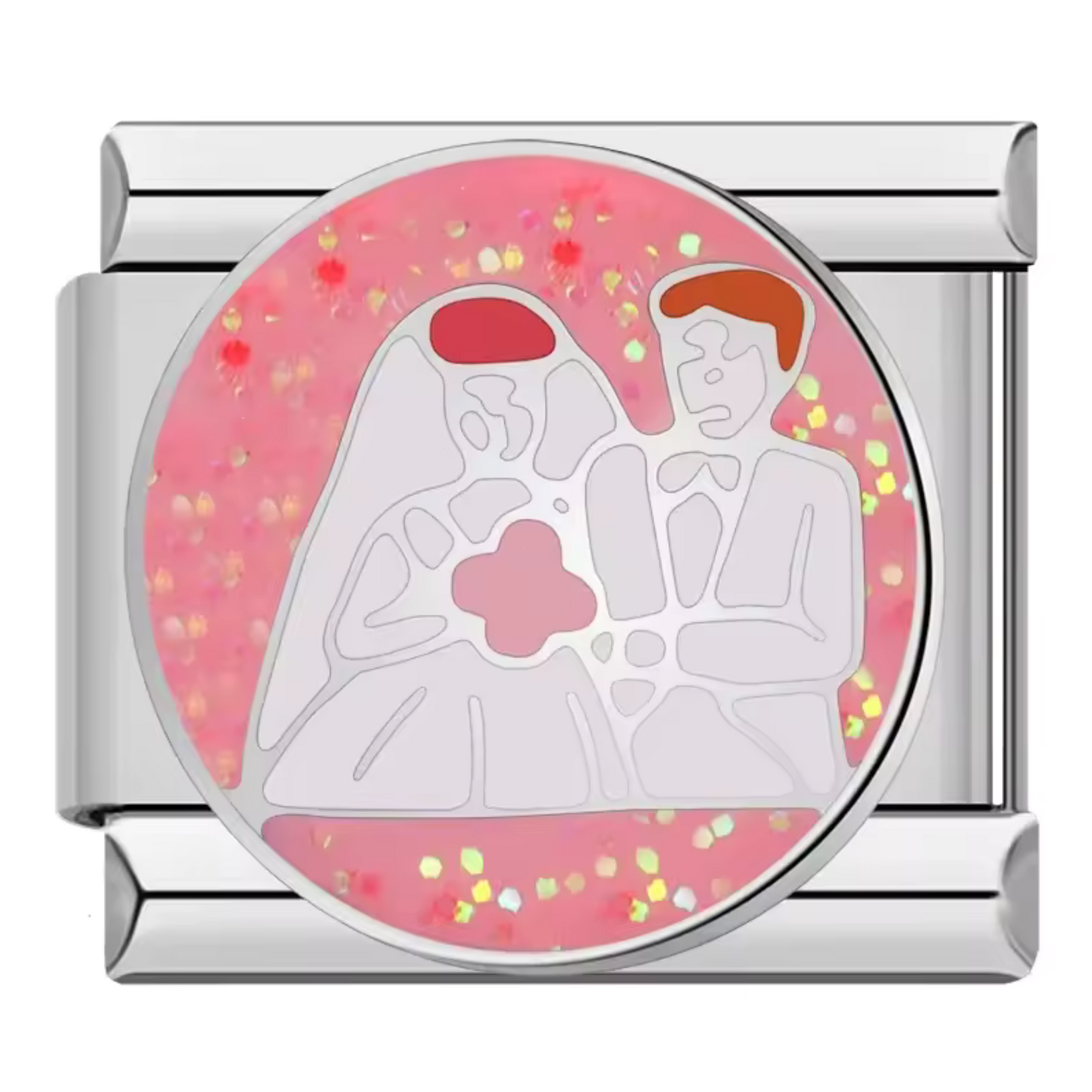 Ce charm italien illustre un couple de mariés, symbole d’amour éternel et de célébration. Conçu en acier inoxydable de haute qualité, il allie robustesse et finesse des détails pour un rendu élégant et romantique. Facile à fixer, il s’adapte parfaitement à nos bracelets composés de 17 maillons extensibles et réglables, convenant à toutes les tailles de poignet. Compatible avec tous nos charms italiens, ce bijou raffiné est idéal pour personnaliser votre bracelet avec une touche de tendresse et d’émotion.