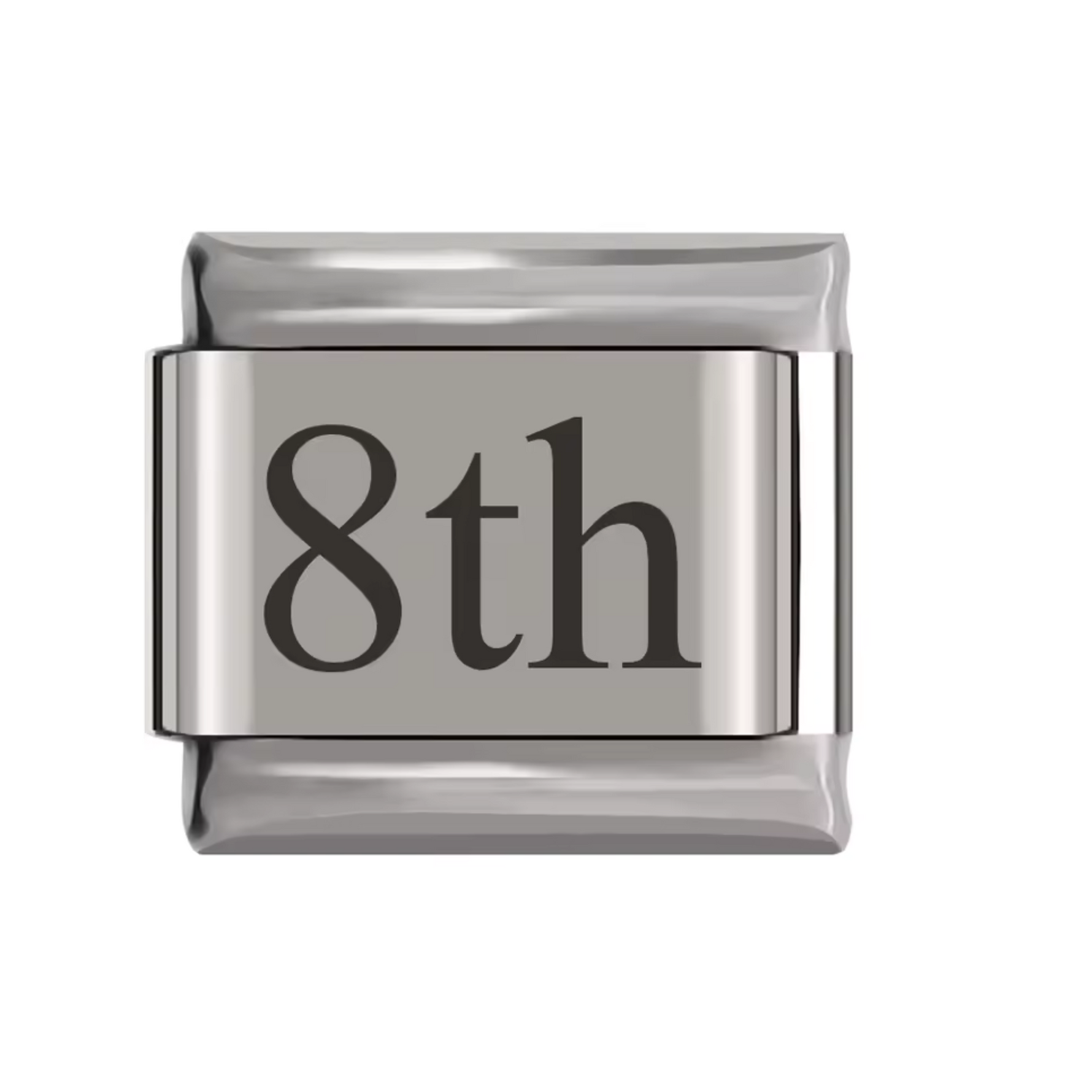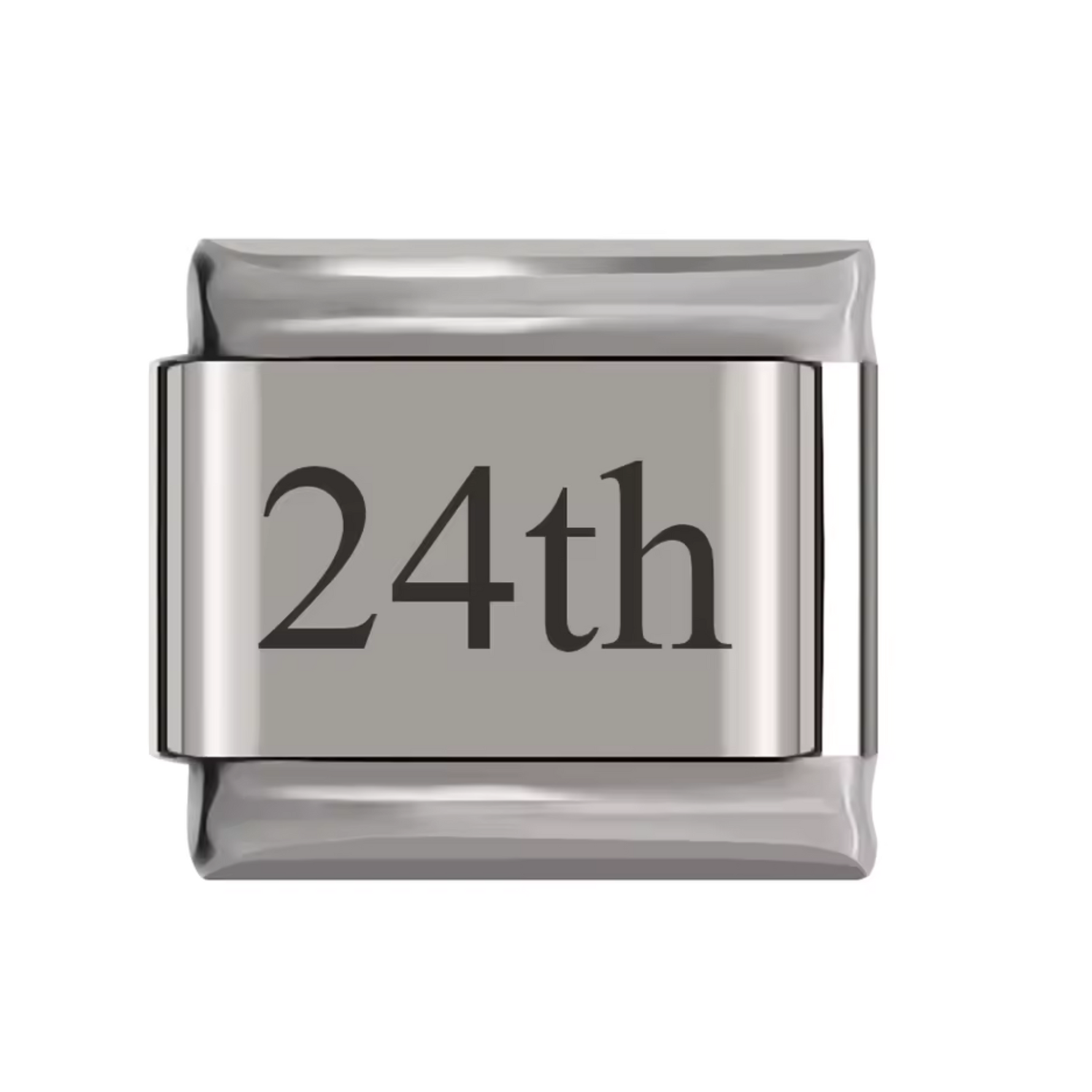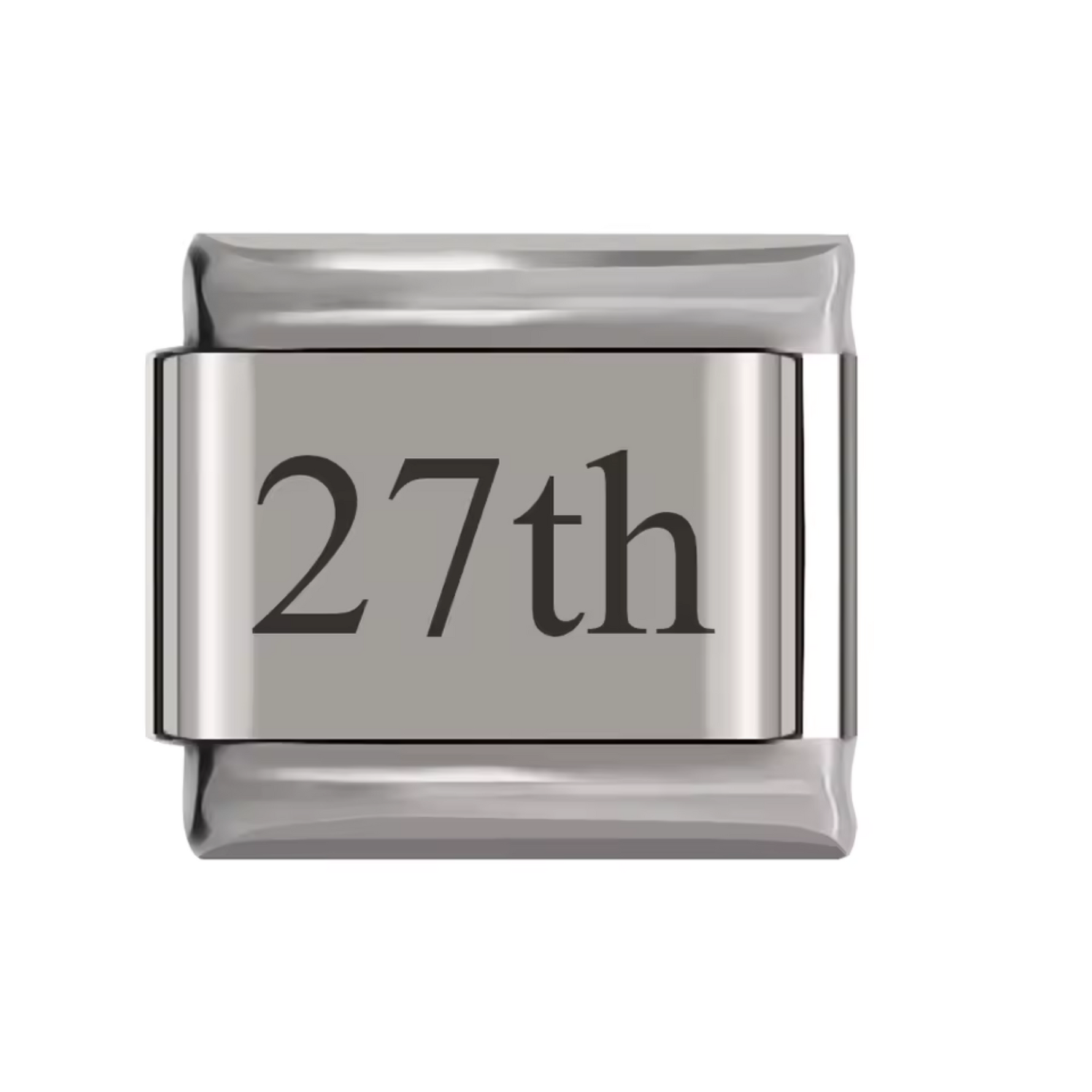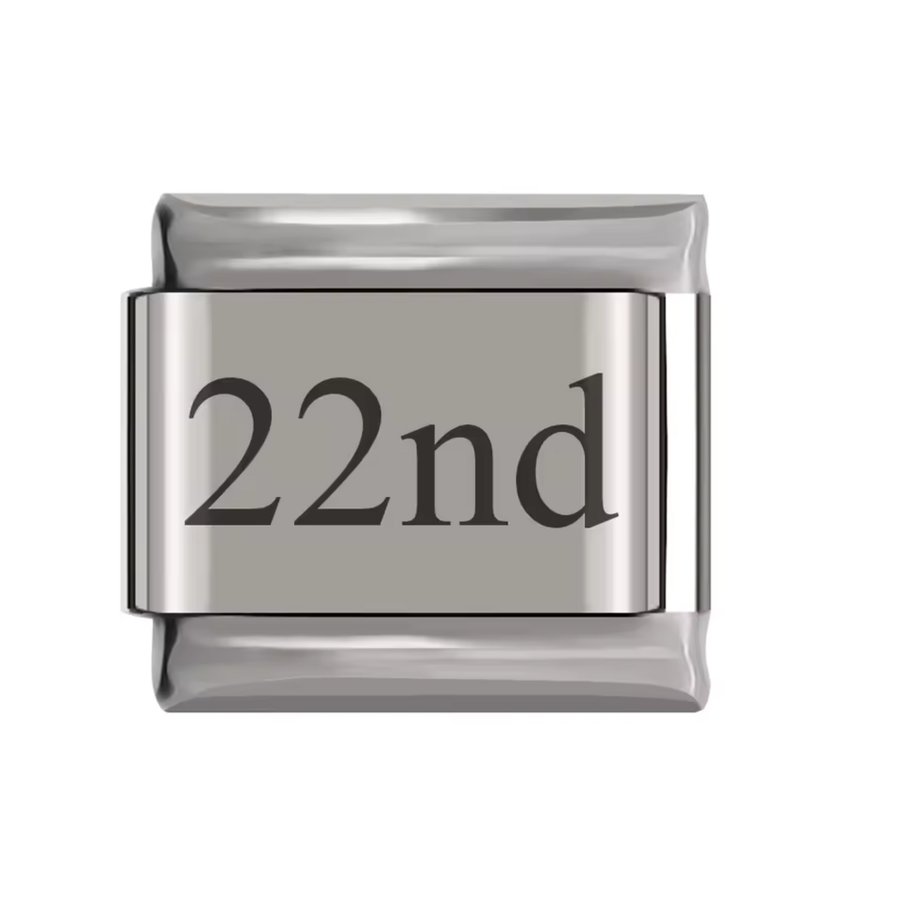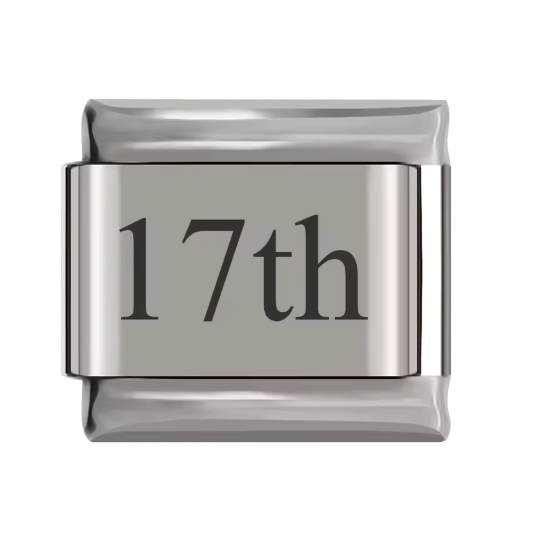 Ce charm italien en finition argentée représente un numéro allant du 1st au 31st, parfait pour symboliser une date spéciale ou un anniversaire. Fabriqué en acier inoxydable de haute qualité, il combine robustesse et finesse des détails pour un rendu élégant et intemporel. Facile à fixer, il s’adapte parfaitement à nos bracelets composés de 17 maillons extensibles et réglables, convenant à toutes les tailles de poignet. Compatible avec tous nos charms italiens, ce bijou symbolique est idéal pour personnaliser votre bracelet avec un chiffre qui vous tient à cœur.